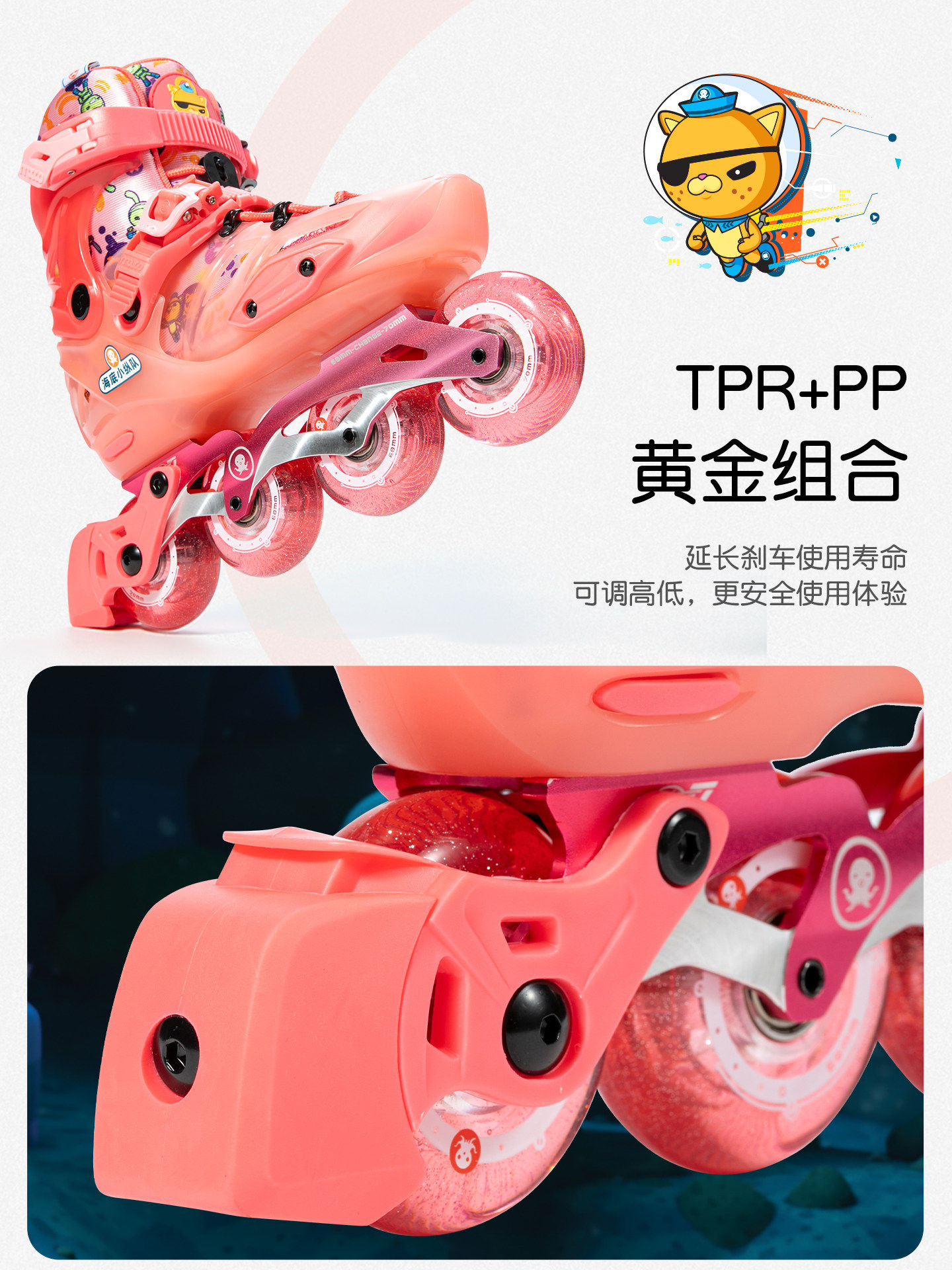 淘宝米高儿童轮滑鞋全套装海底小纵队花样溜冰鞋平花直排花式旱冰初学