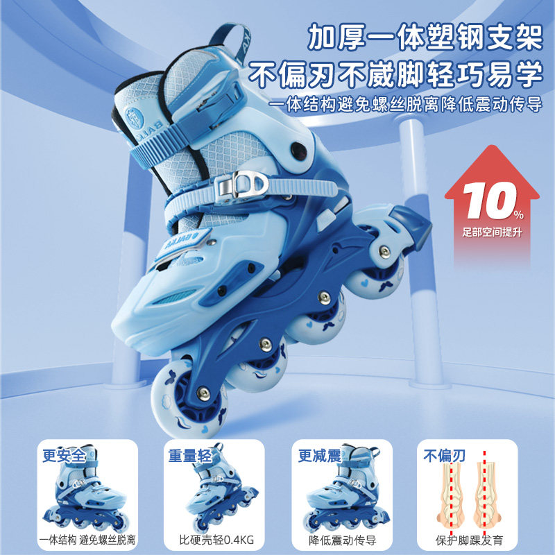 3-4-6-8-10-12岁儿童溜冰鞋全套轮滑男孩女孩闪光旱冰滑冰鞋可调