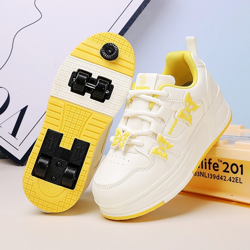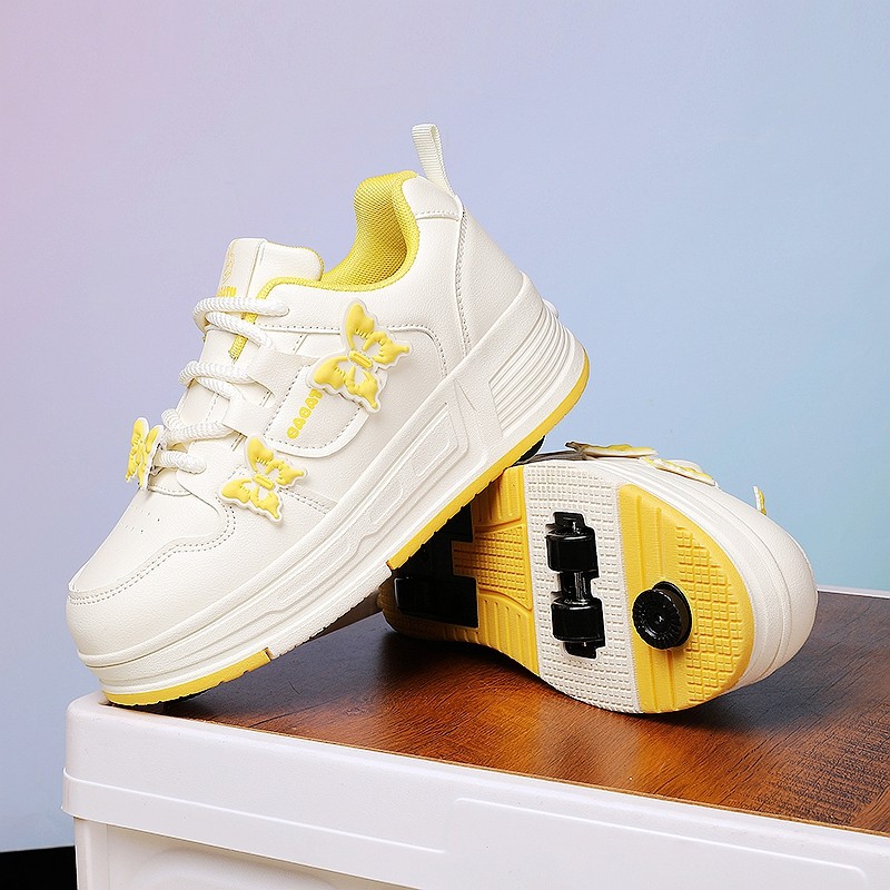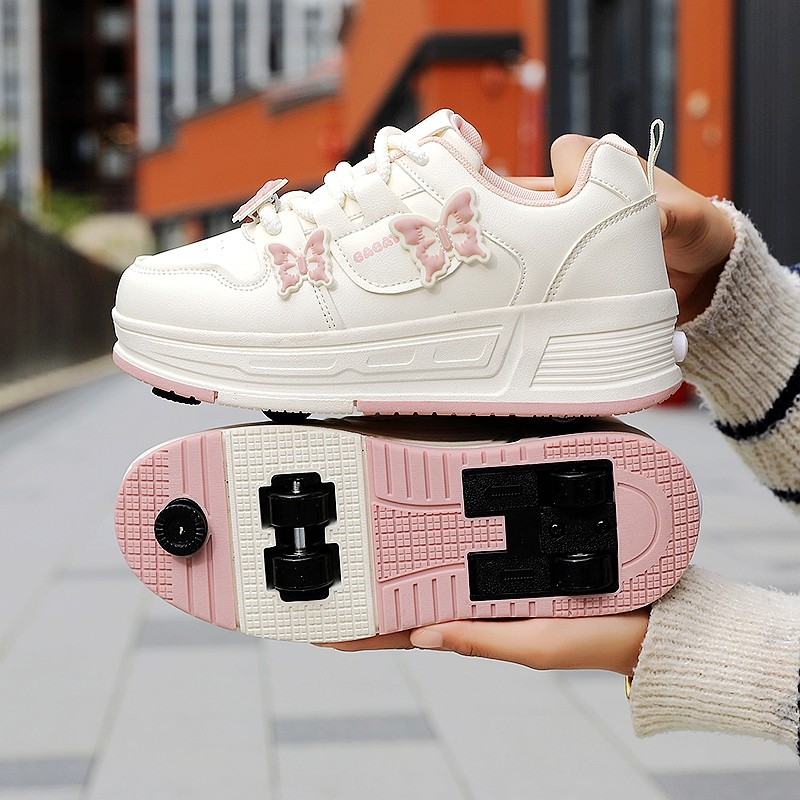 这款女童四轮暴走鞋集时尚与运动于一体,专为活泼好动的孩子设计。鞋身轻便舒适,采用优质透气材料,呵护孩子娇嫩双足。最大亮点是内置一键可收缩四轮系统,轻轻一按即可切换滑行与步行模式,操作简单安全。轮子采用高弹耐磨材质,滑行顺滑静音,后置刹车设计让孩子轻松掌控速度,提升安全性。隐形轮滑设计让鞋子外观与普通运动鞋无异,日常穿搭更百搭。无论是上学、出游还是户外玩耍,都能让孩子自由切换“飞行”模式,享受轮滑乐趣,激发运动潜能,是兼具趣味性与实用性的儿童运动装备。