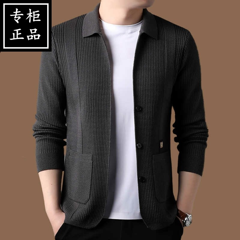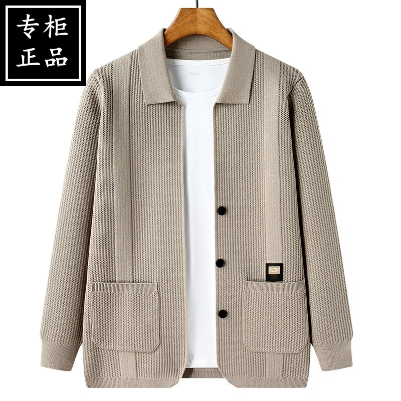 淘宝2025新款翻领开衫中青年羊毛衫春秋季男士羊绒休闲针织衫毛衣外套