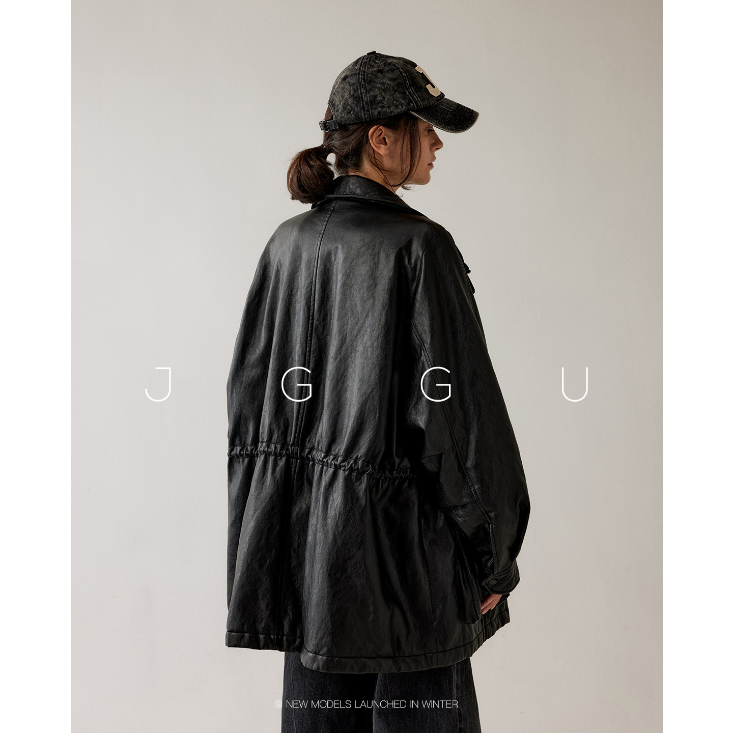 天猫晶咕黑标JGGU【未名公路】PU皮工装派克气质机车皮衣女外套女秋冬