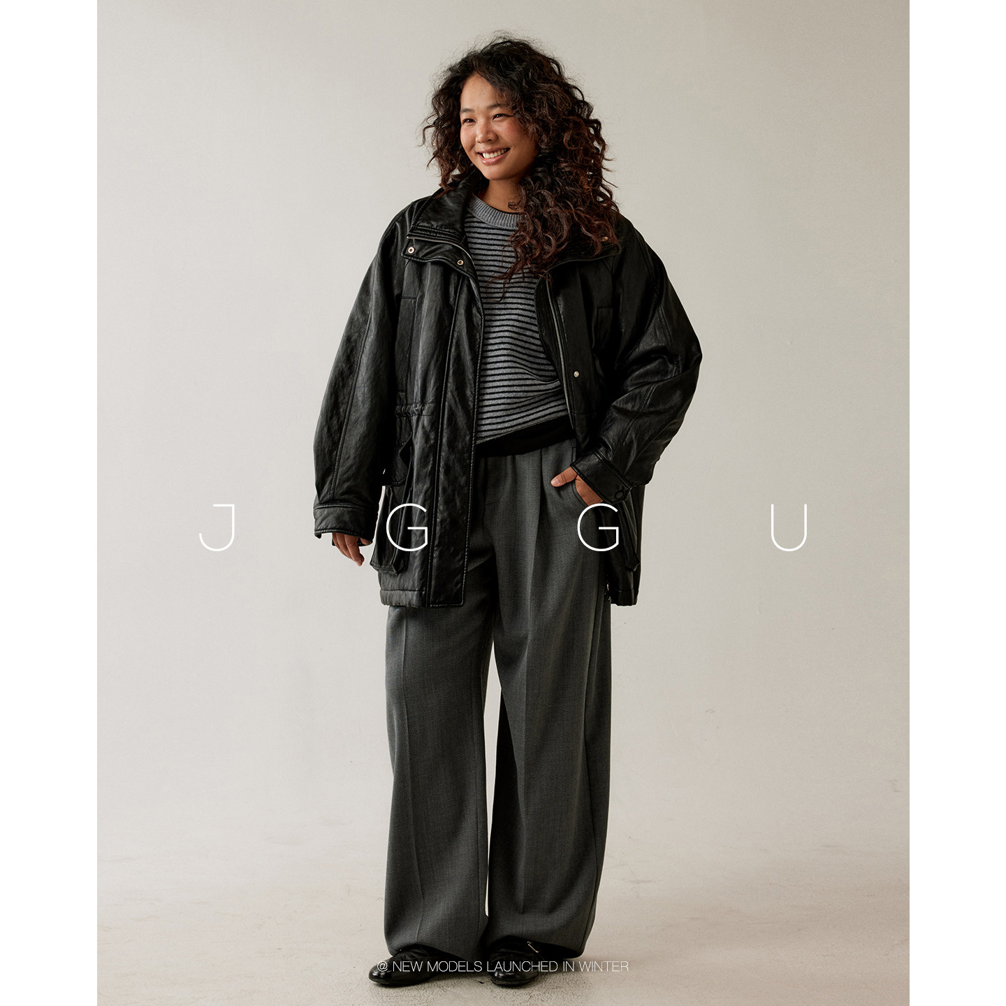 晶咕黑标JGGU【未名公路】PU皮工装派克气质机车皮衣,专为追求个性与质感的女生设计。采用高品质环保PU皮,触感细腻、挺括有型,兼具机车风的酷飒与工装派克的多功能实用。立领设计搭配金属拉链,利落干练,袖口与下摆可调节,防风保暖。多口袋装饰增添层次感,兼顾美观与储物需求。整体剪裁修身显瘦,轻松驾驭秋冬街头潮流。无论是搭配牛仔裤还是裙装,都能展现独立自信的都市女性气质,是秋冬出街的必备时尚单品。