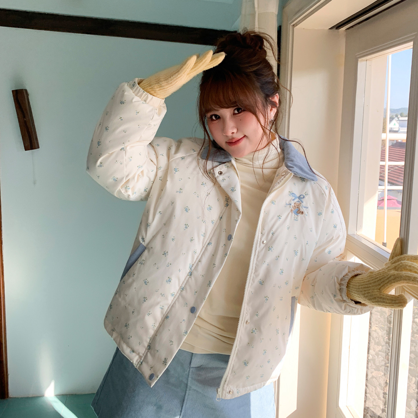 淘宝YUZI鱼子少女碎花90白鸭绒羽绒服女短款冬季加厚宽松外套大码女装