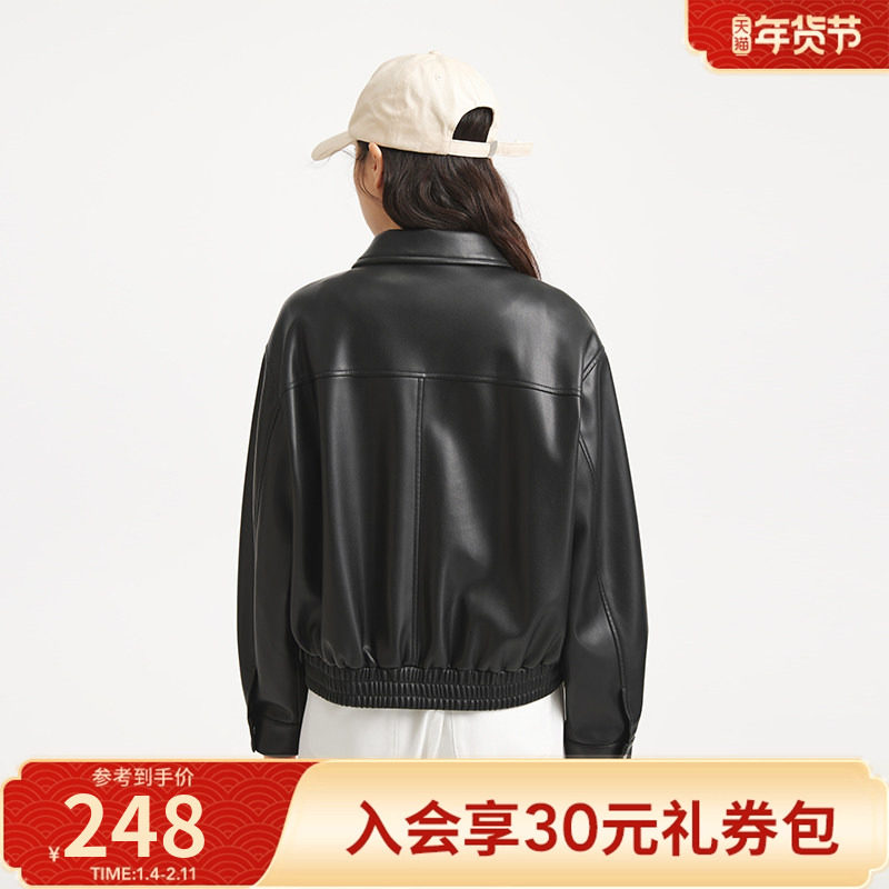 天猫热风2025年秋季新款女士复古仿PU外套款潮流街头拉链翻领上衣