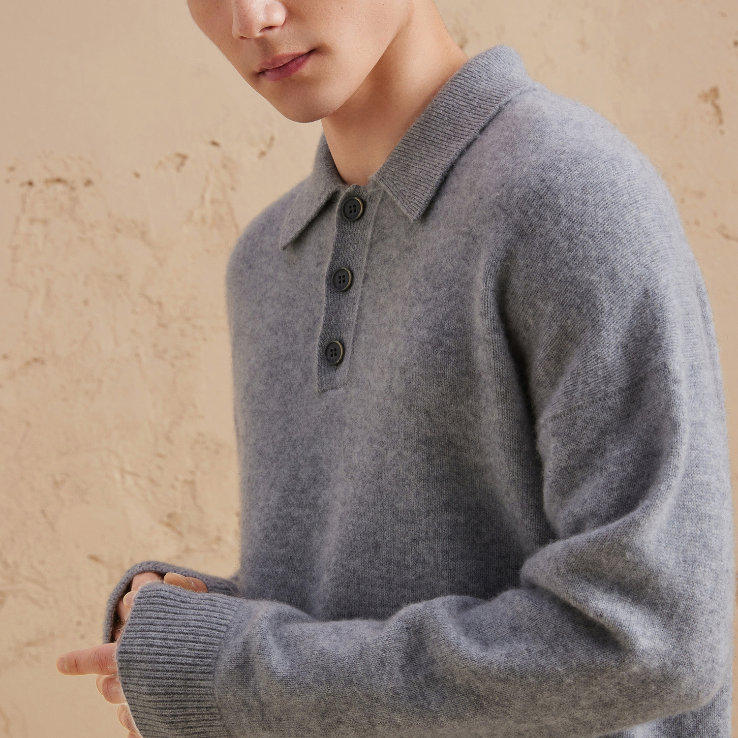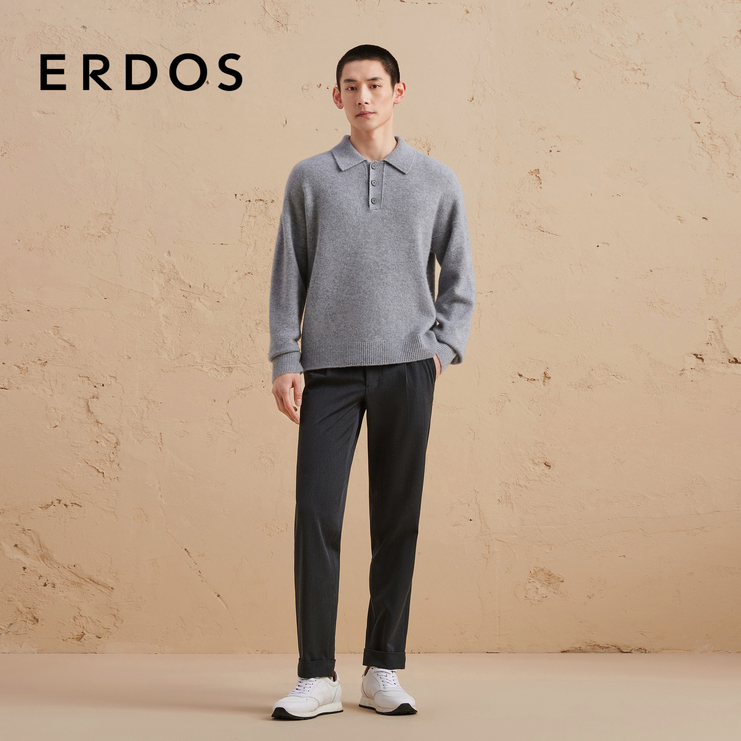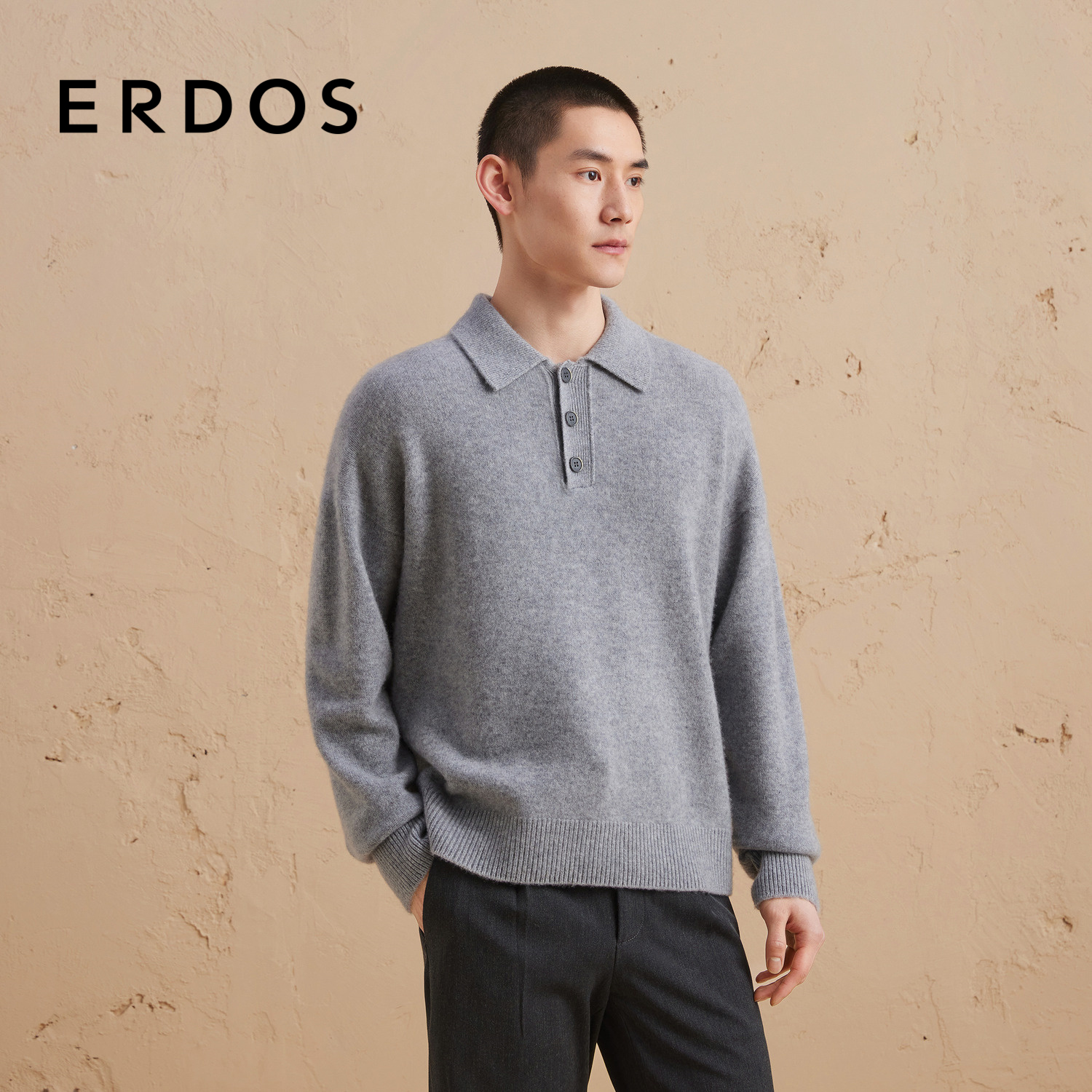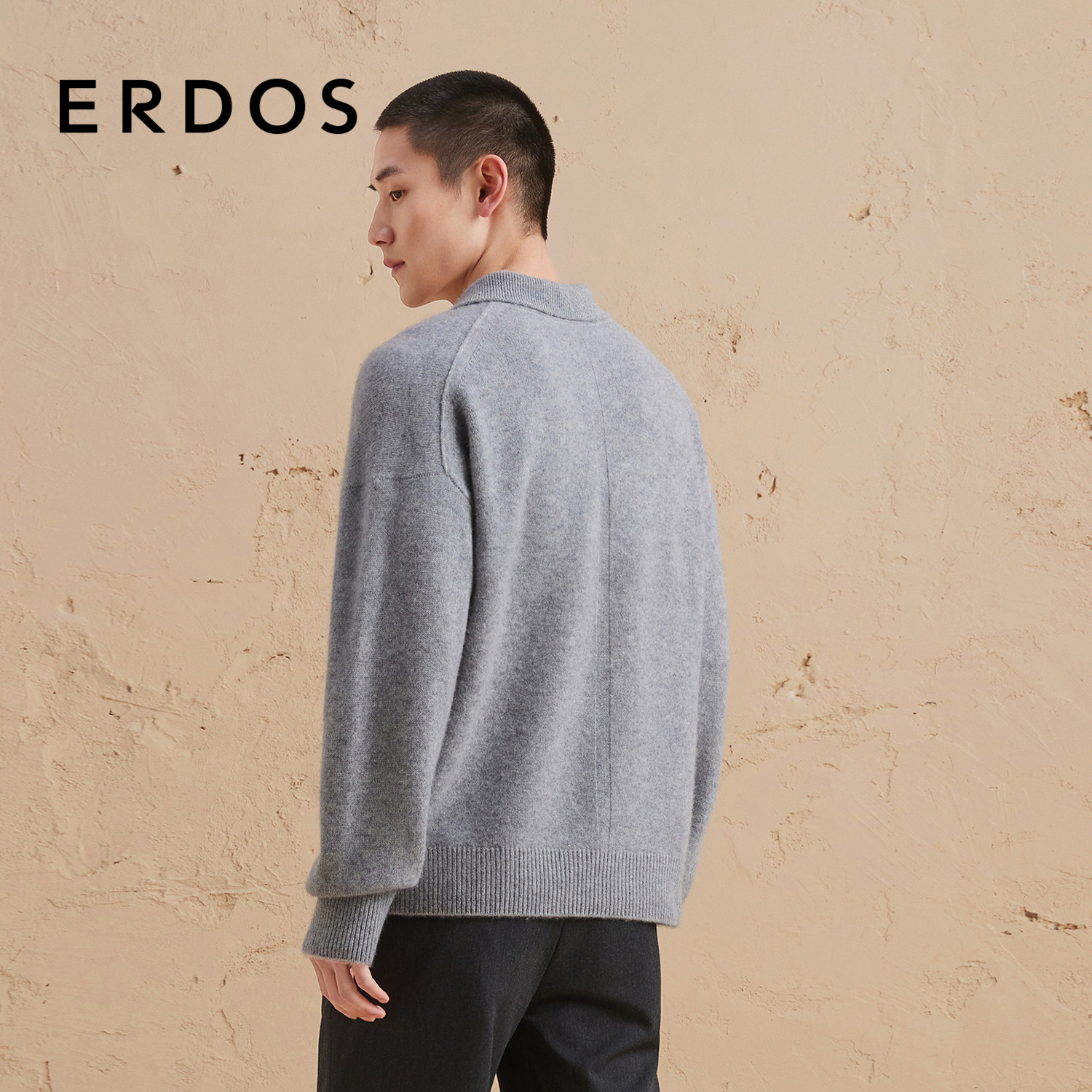天猫ERDOS 男装羊绒衫秋冬灰色翻领宽松厚款筋骨感针织衫