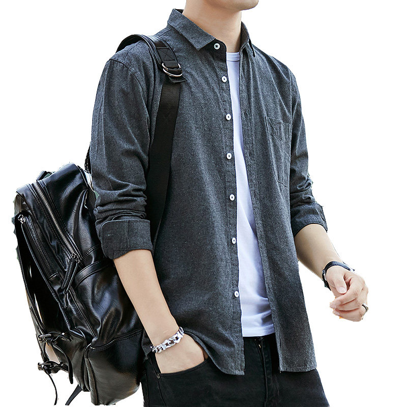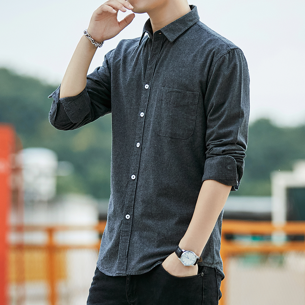 淘宝春季新款男士磨毛衬衣宽松休闲上衣男款纯棉长袖衬衫男装潮流外套