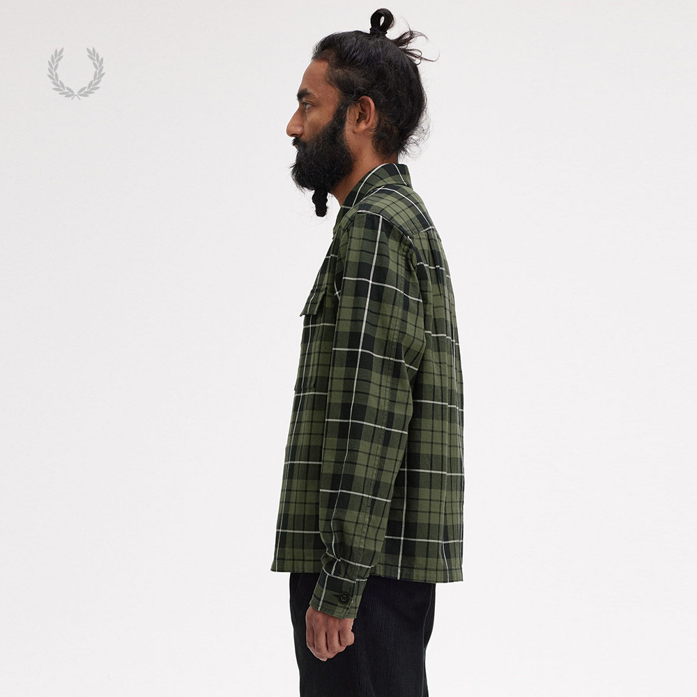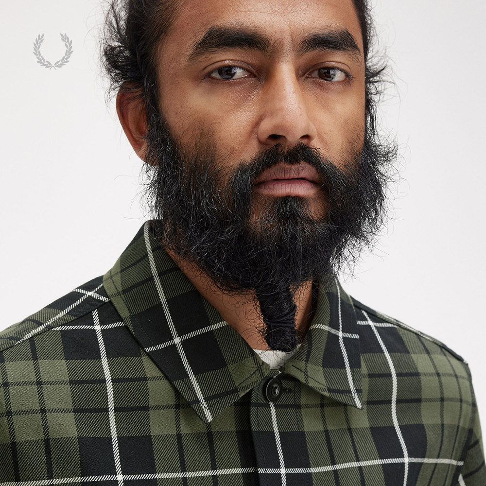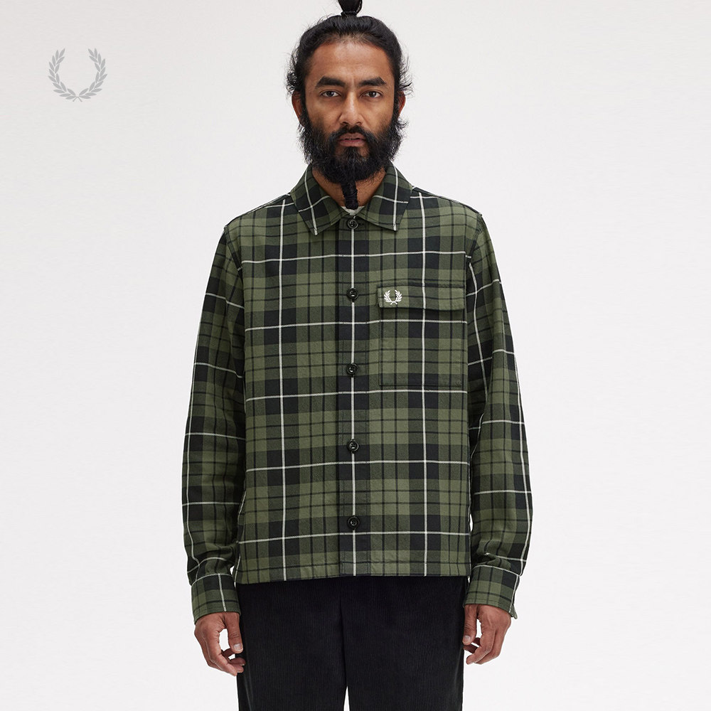 天猫FRED PERRY男士长袖衬衫冬季英伦商务宽松休闲格子麦穗刺绣M8515