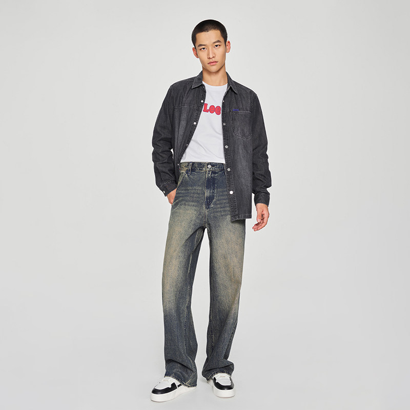 佐丹奴2026年春季新款水洗双口袋潮牌时尚长袖牛仔衬衫男18043609