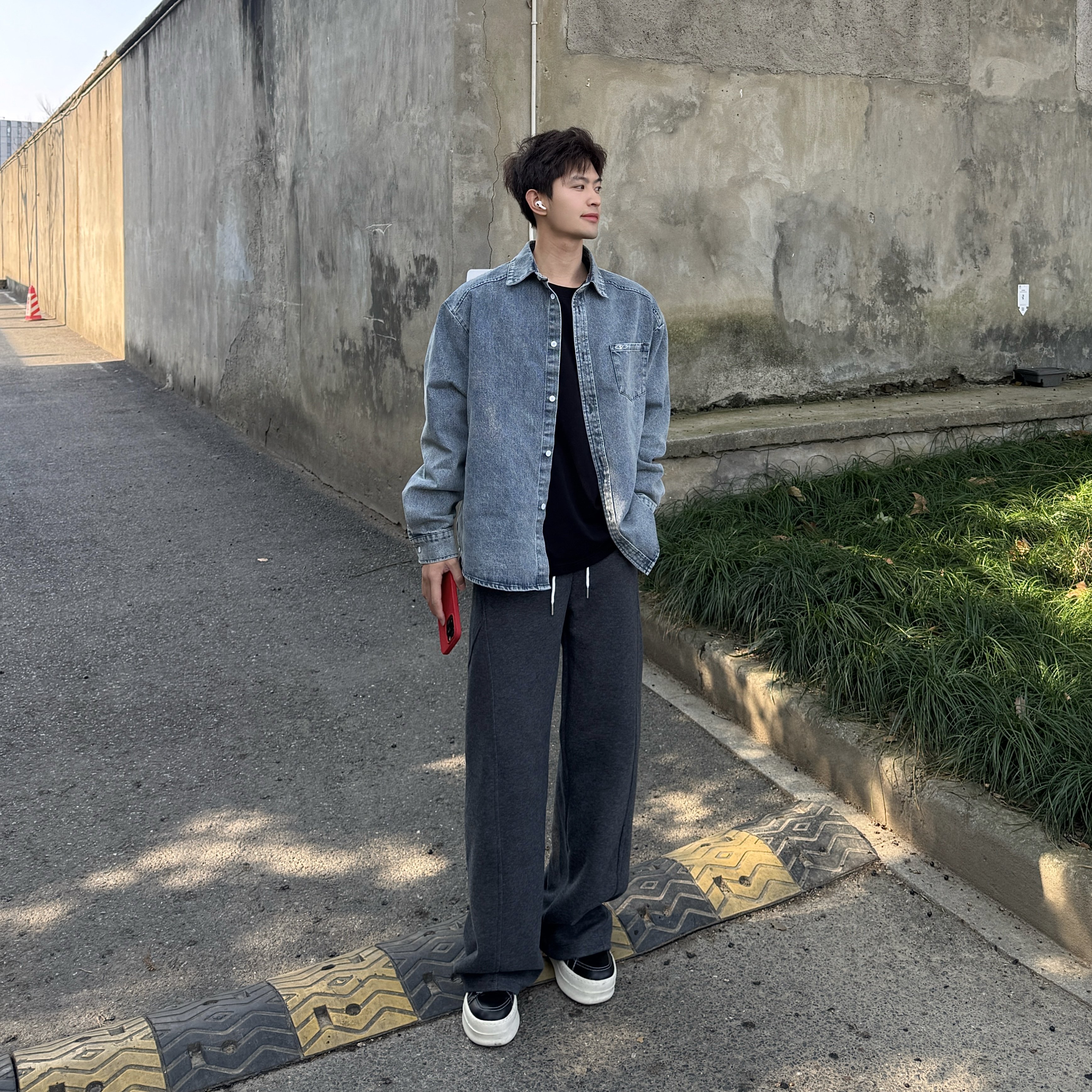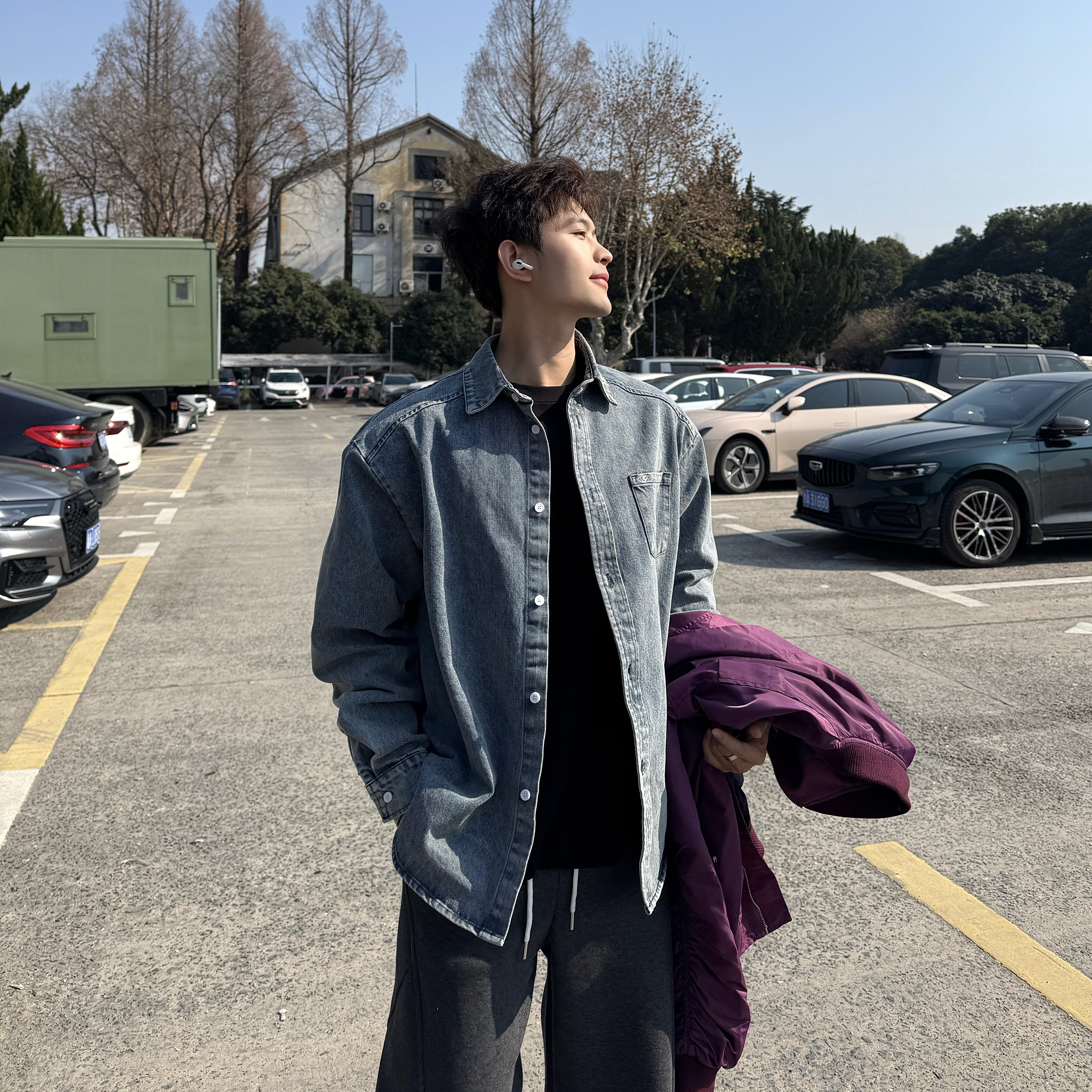 淘宝飞型记美式复古重工水洗长袖牛仔衬衫男2026春季做旧潮牌衬衣外套