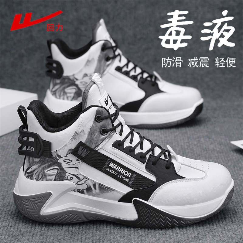 淘宝回力男鞋高帮2025冬季新款青少年皮面防水缓震实战防滑篮球运动鞋