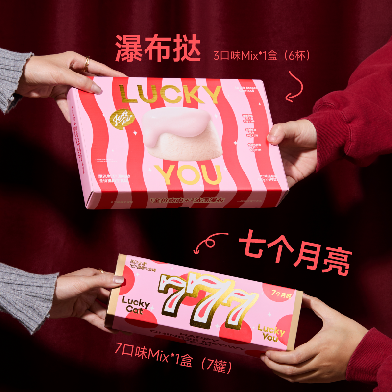 天猫尾巴生活新年礼盒七个月亮主食罐头彩虹挞挞猫罐头猫咪新年礼物
