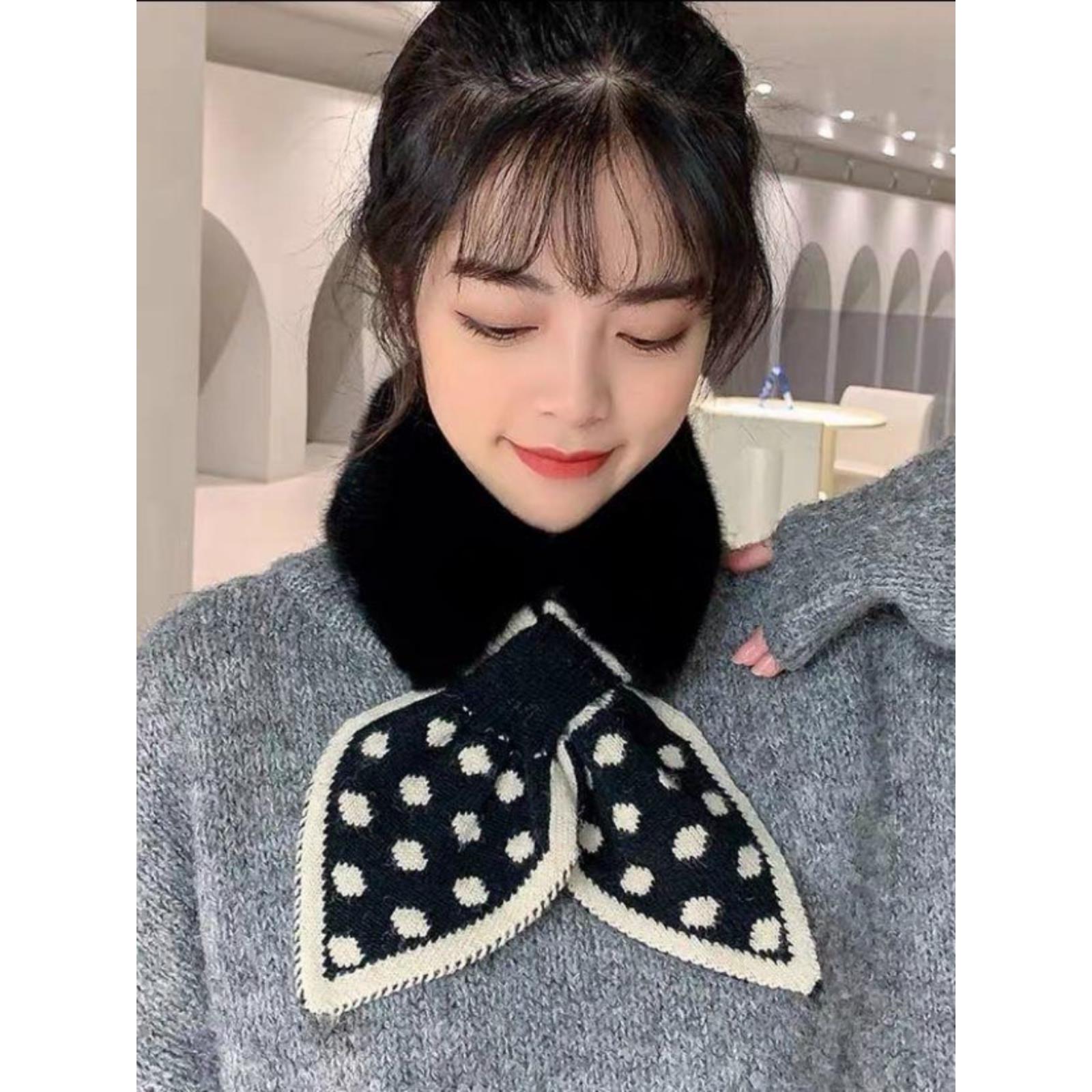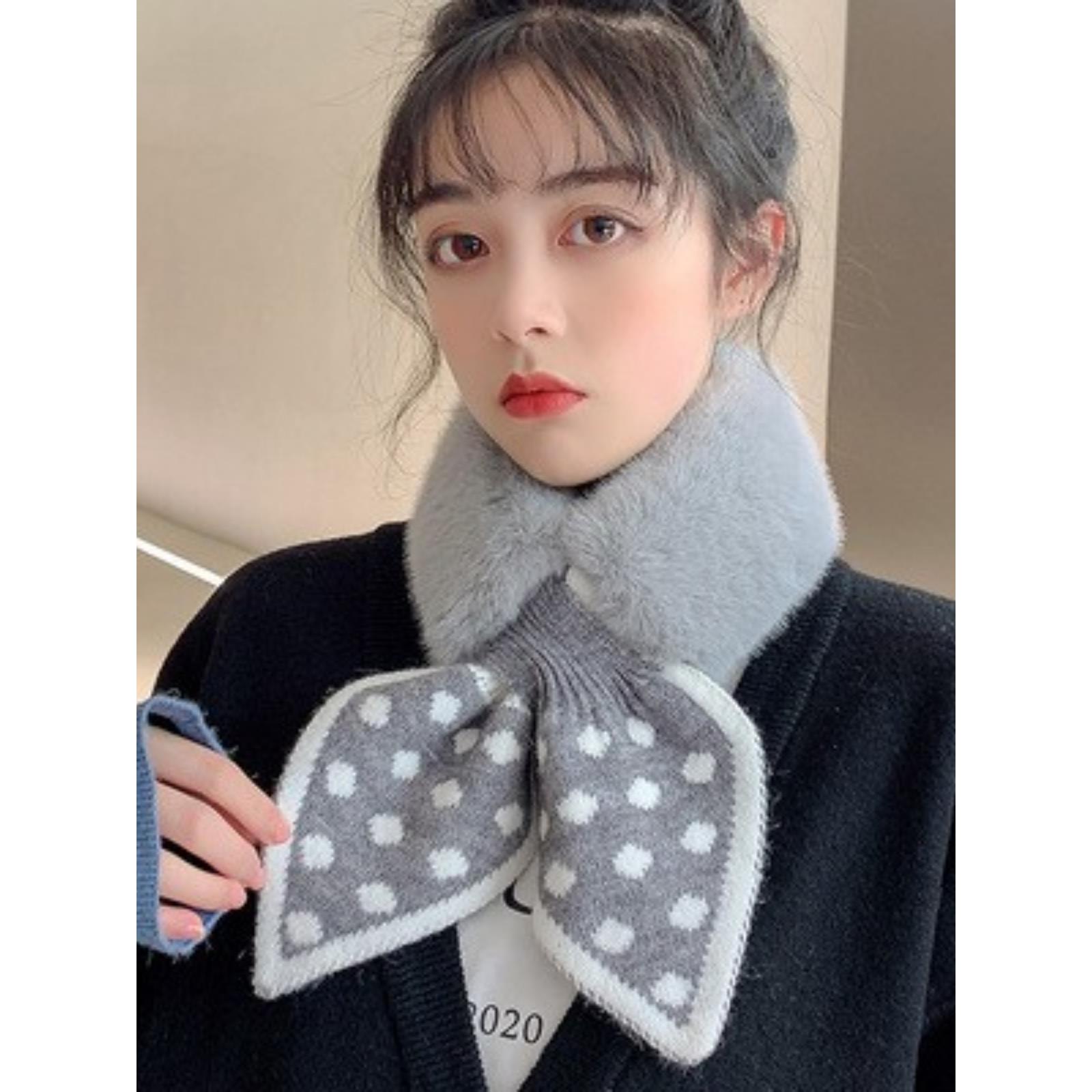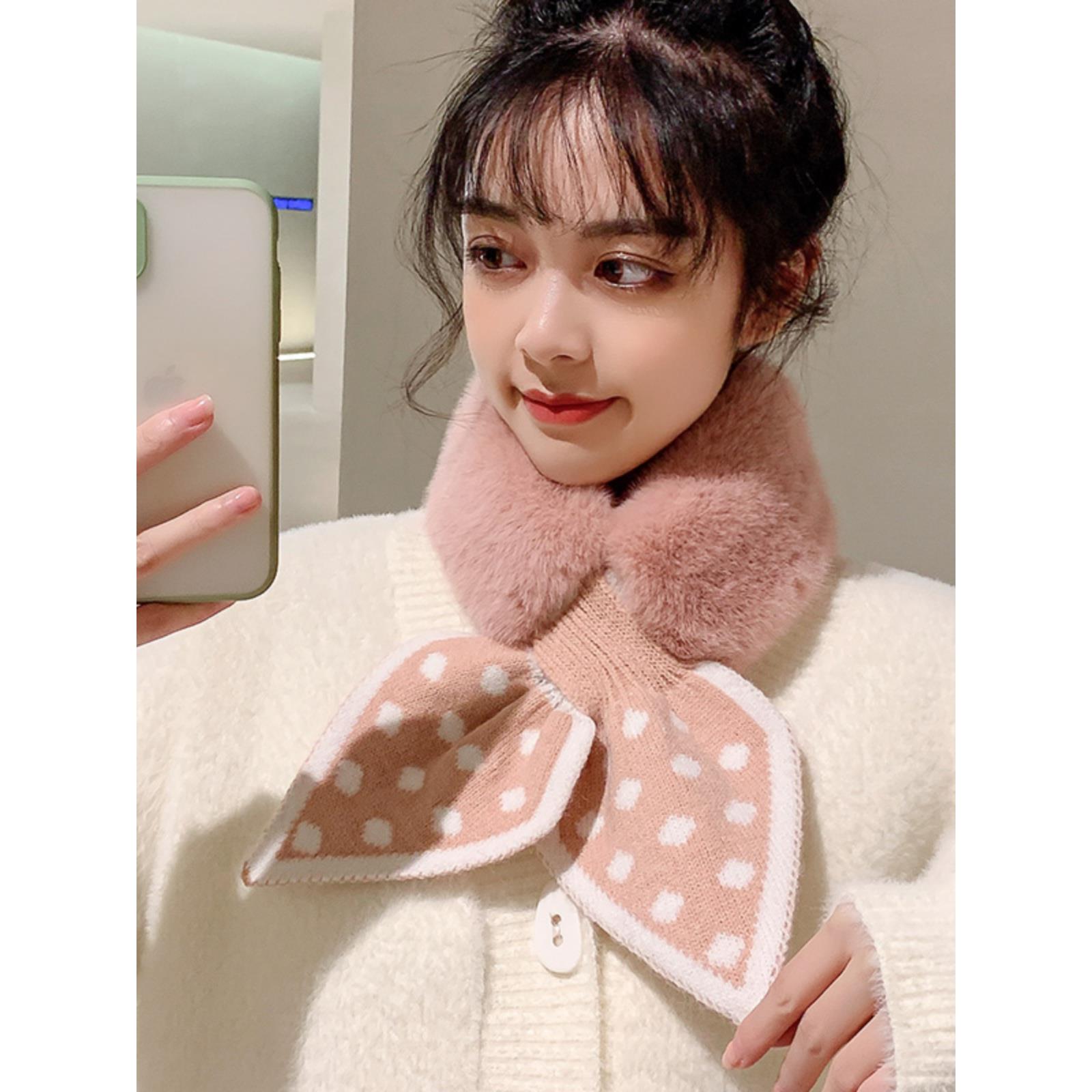 天猫围巾女秋冬季可爱彷獭兔毛毛韩版百搭保暖交叉小燕尾毛领毛绒围脖