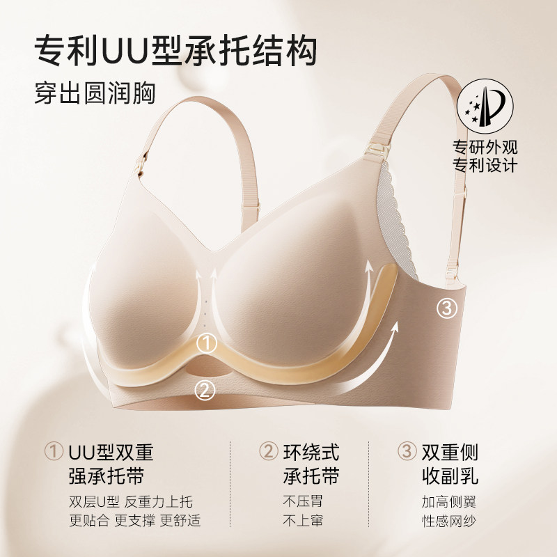 天猫嫚熙透气舒适UU撑哺乳内衣聚拢防下垂文胸孕妇产后喂奶怀孕期专用