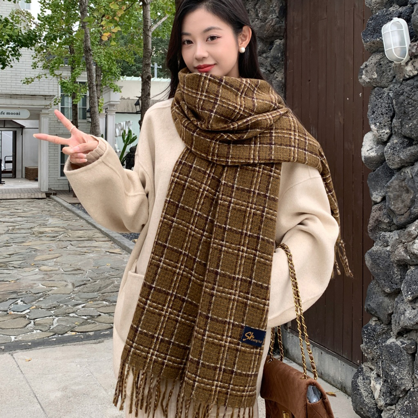 淘宝韩系氛围感复古格纹流苏针织围巾女2025冬季新款加厚保暖防寒围脖