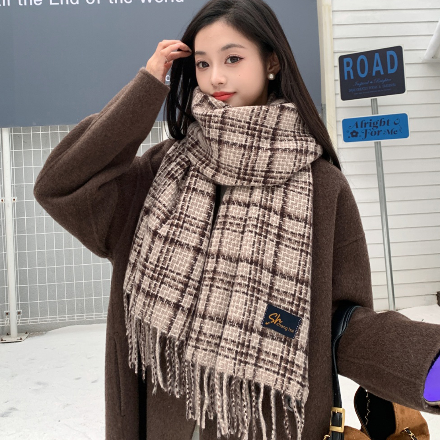 2025年冬季新款加厚拼接时尚格纹格纹围巾女防寒保暖护脖围脖