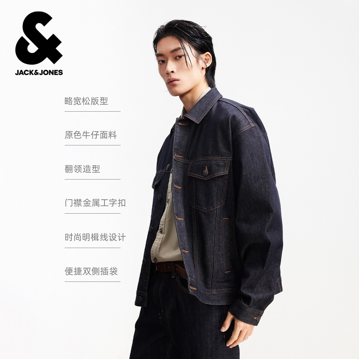淘宝绫致杰克琼斯男装夹克潮流百搭翻领领口日常舒适休闲牛仔上衣外套
