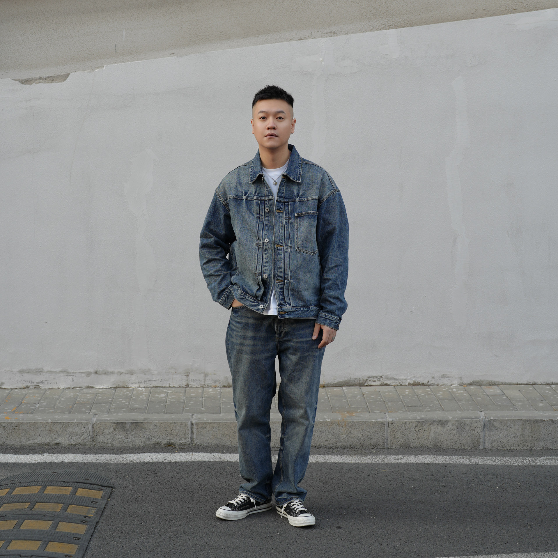 YONDERREALM 25AW 14oz复古水洗牛仔外套,以经典丹宁面料打造,采用14盎司重磅棉质斜纹布,质感挺括耐磨。经过复古水洗与做旧工艺处理,呈现出自然褪色与岁月痕迹,赋予每件外套独一无二的 vintage 韵味。宽松剪裁设计,兼顾舒适与潮流感,适合日常通勤、休闲出行等多种场合。翻领、单排扣门襟、胸前口袋等细节保留经典工装元素,同时融入现代审美。无论是搭配T恤、卫衣还是衬衫,都能轻松驾驭,展现随性不羁的型男风格。YONDERREALM 以匠心工艺重塑经典,为都市男性提供兼具质感与风格的丹宁选择。