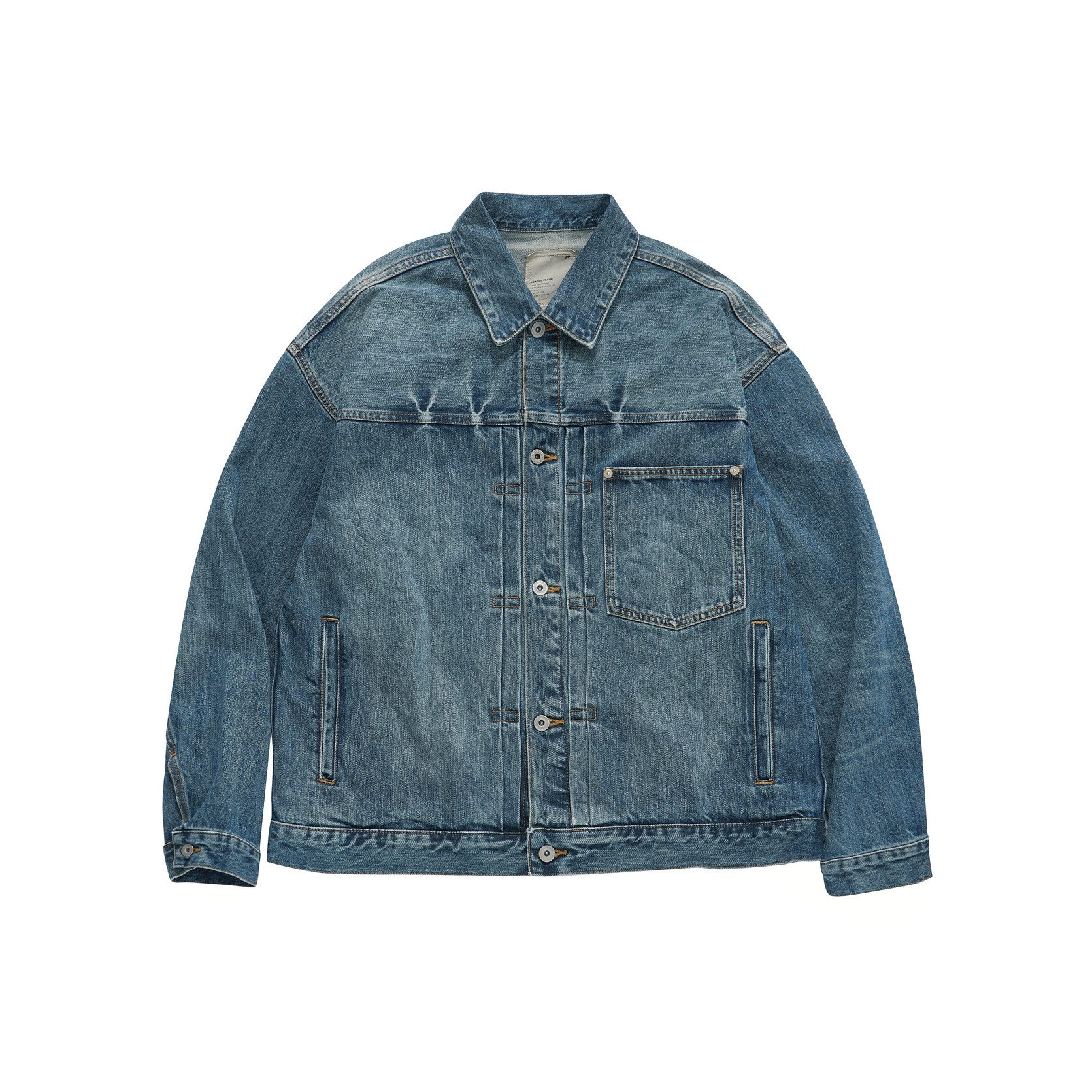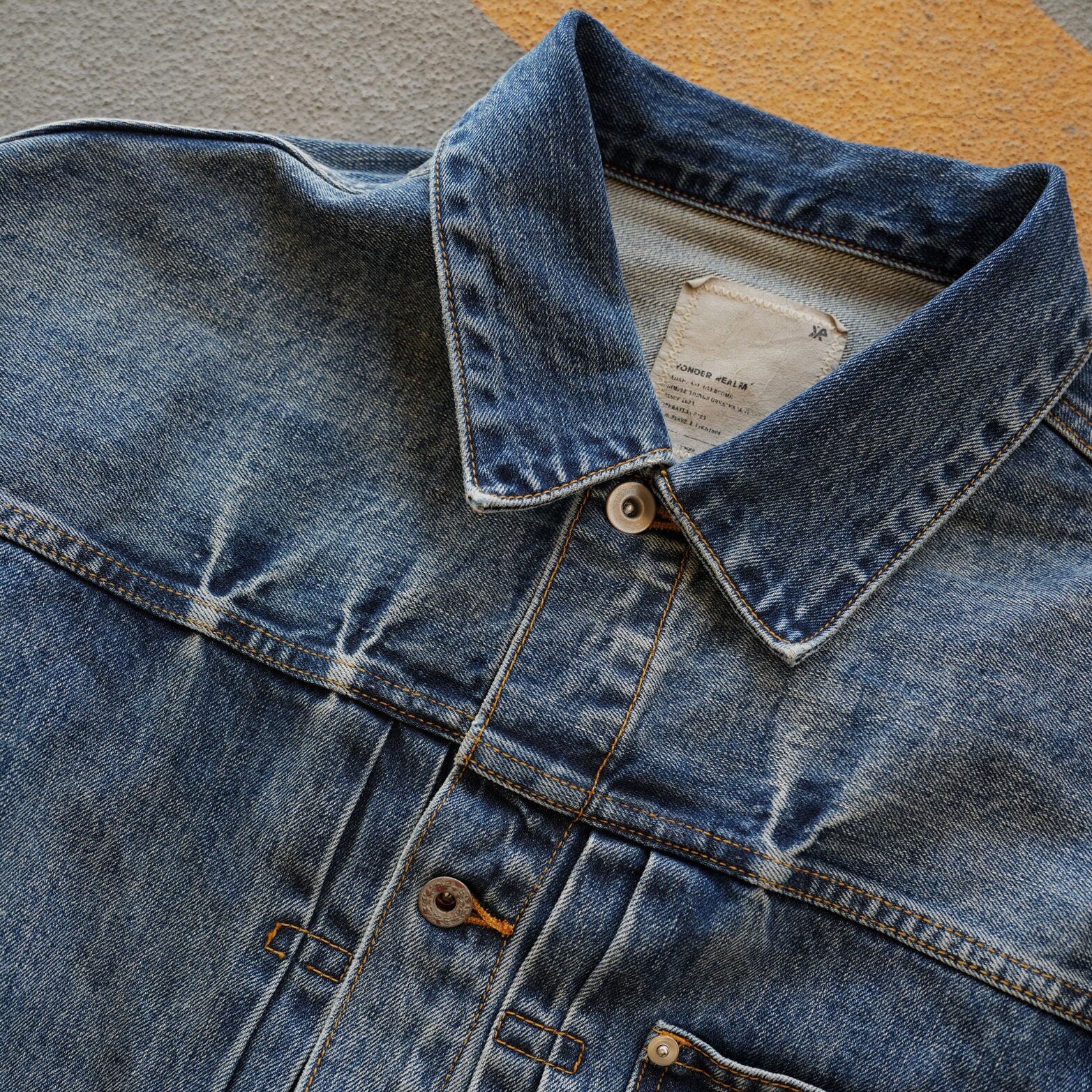 淘宝YONDER REALM25AW14oz复古水洗牛仔外套男士做旧丹宁夹克通勤宽松