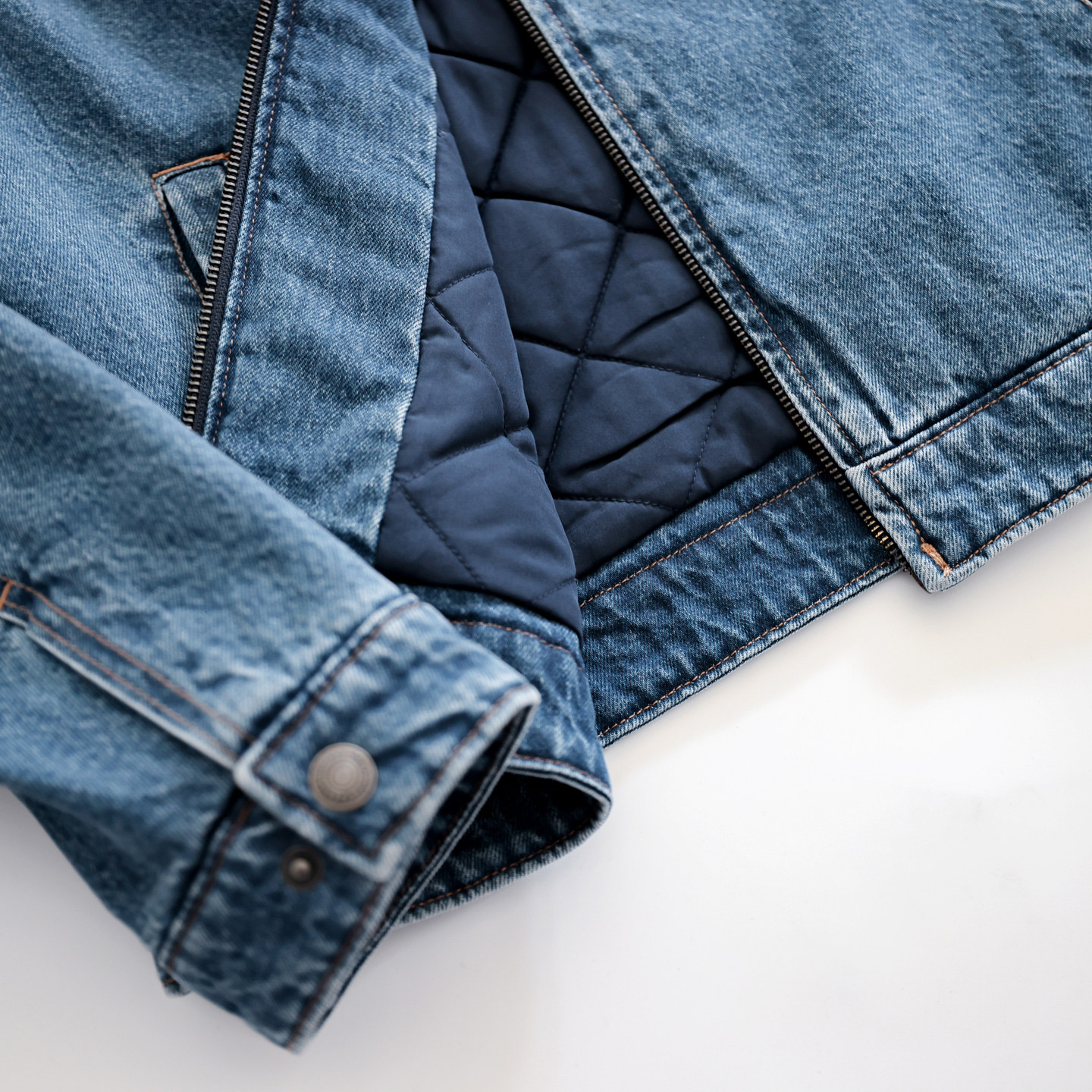 MEDM 简约牛仔拼接灯芯绒休闲夹克秋冬水洗做旧蓝色男女翻领外套