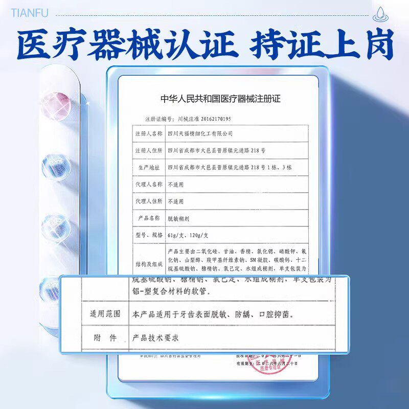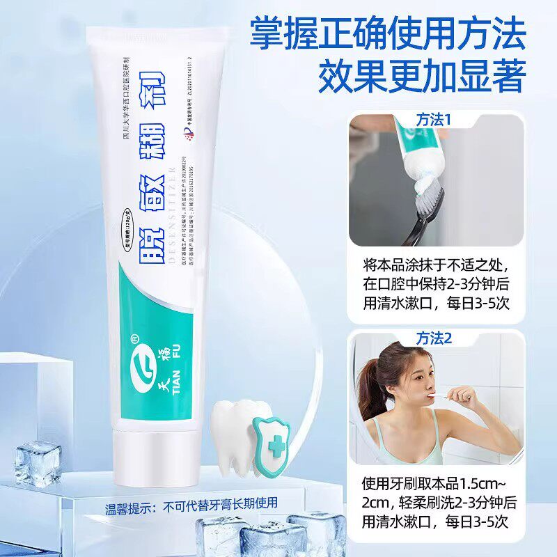 天福脱敏糊剂是一款由华西口腔权威认证的专业牙齿脱敏产品,适用于牙本质敏感、牙龈萎缩引起的牙齿酸痛等问题。其采用先进脱敏成分,能有效封闭牙本质小管,快速缓解冷热酸甜刺激带来的不适。同时具备防龋功效,强化牙釉质,抑制口腔有害菌滋生,维护口腔微生态平衡。产品为非牙膏类医用级口腔护理品,质地温和,无刺激性,适合长期使用。天福脱敏糊剂在华西口腔正品旗舰店销售,确保品质可靠、来源正规,是家庭口腔健康护理的理想选择,特别适合敏感牙齿人群及术后护理使用。