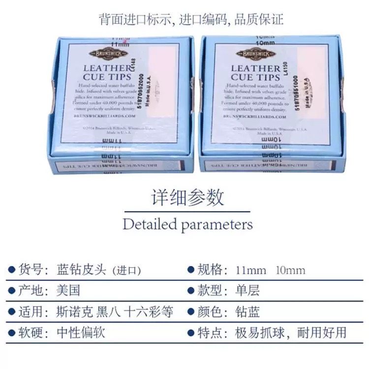 淘宝超级蓝钻进口宾士域蓝钻压制皮头黑八斯诺克台球杆头中性11MM枪头