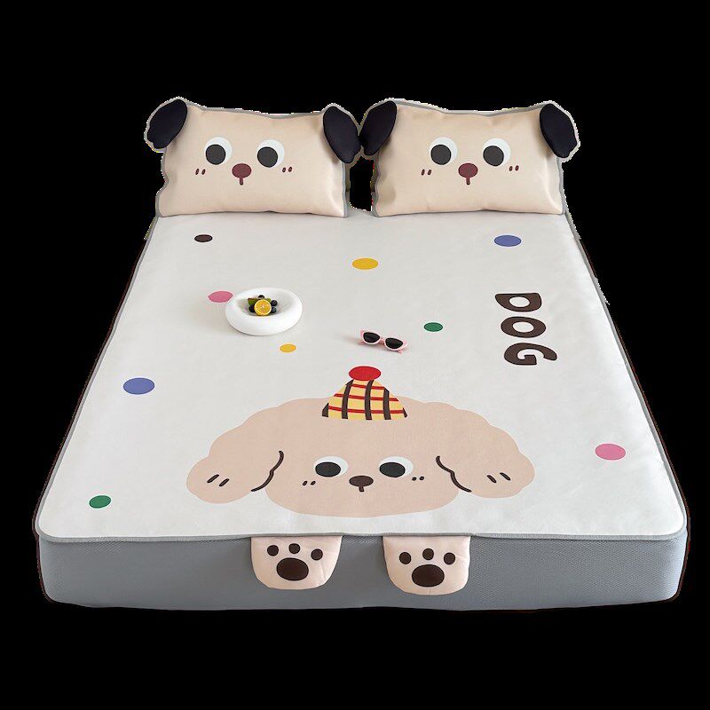 淘宝立体卡通小狗冰丝席三件套900D夏季空调软凉席子床笠款可水洗折叠