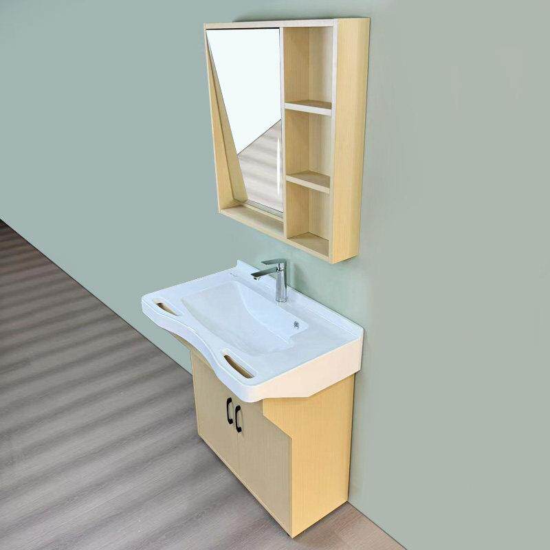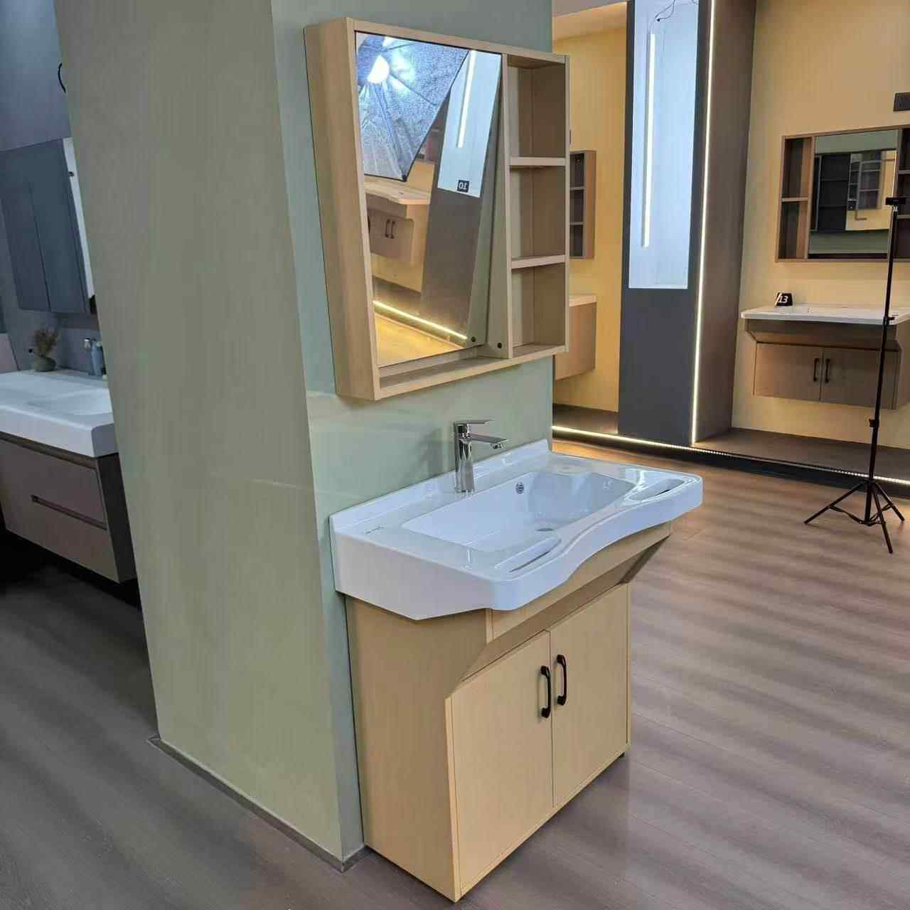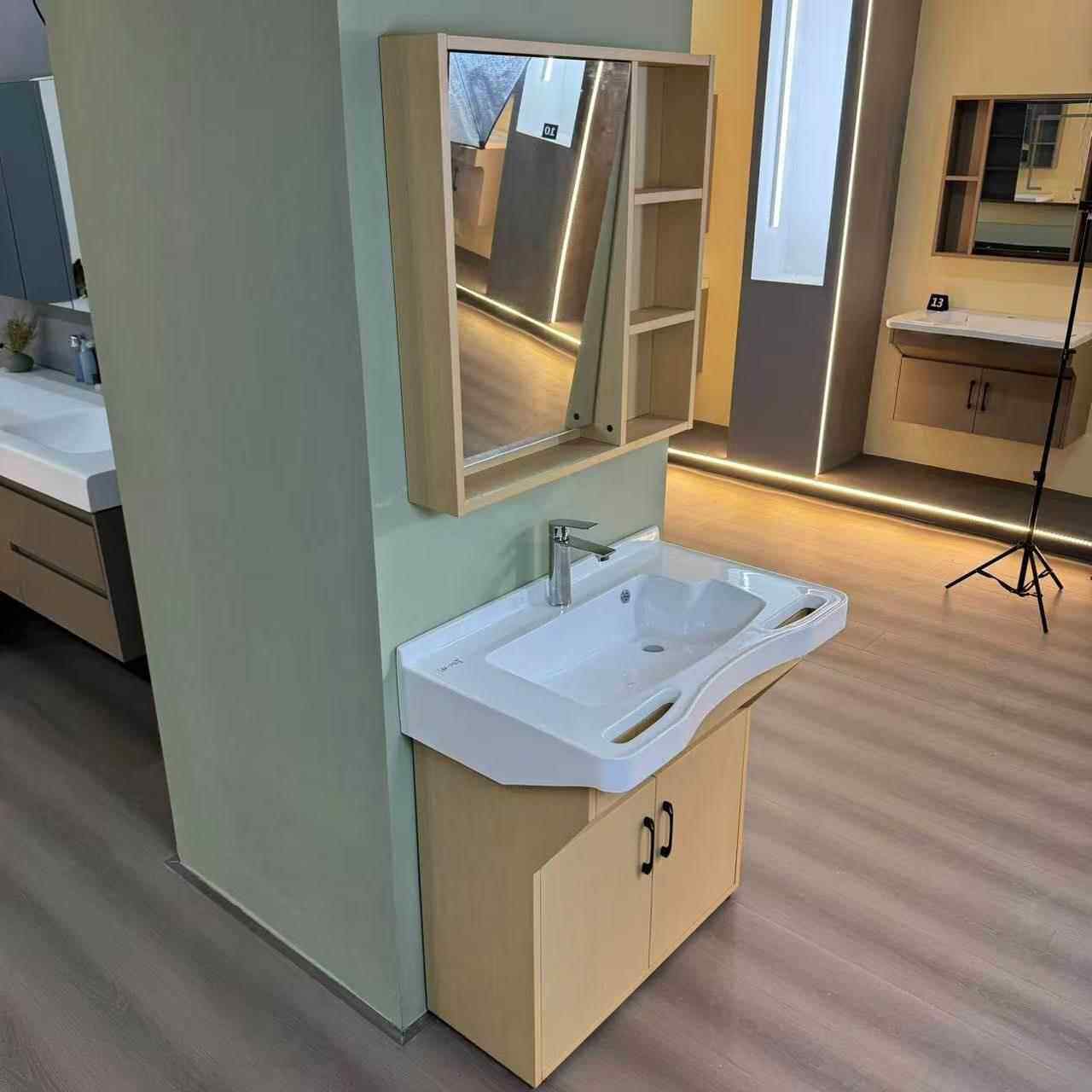 本款专为养老院、康养中心及敬老院设计的适老化智能镜柜浴室柜,融合人性化与科技感。采用落地式稳固结构,边缘圆润防撞,高度符合轮椅使用者需求;台盆深度适中,防溅水设计,搭配恒温龙头,保障安全舒适。镜柜集成LED照明、除雾、触控开关及紧急呼叫按钮,方便长者日常使用。柜体选用防潮抗菌材质,储物空间合理分区,便于收纳护理用品。整体设计兼顾无障碍通行与操作便利性,提升长者洗浴自理能力,守护尊严与安全,是养老机构高品质卫浴空间的理想之选。