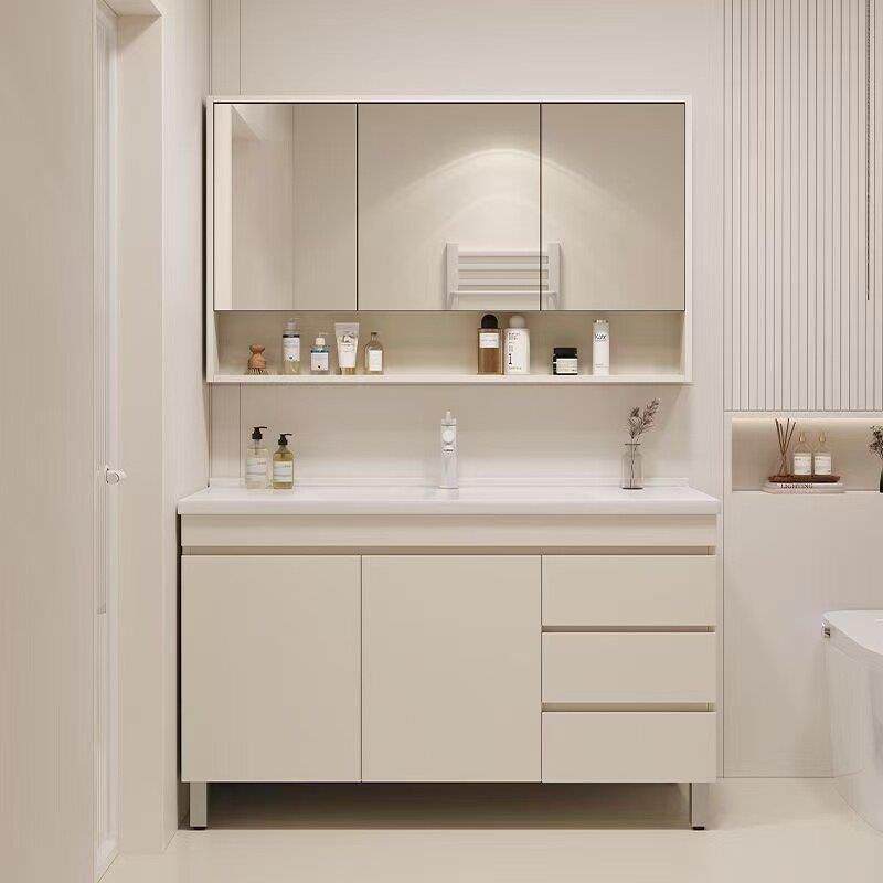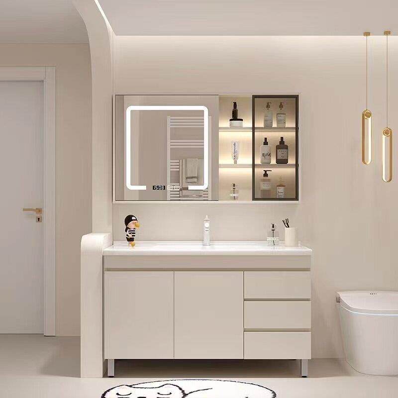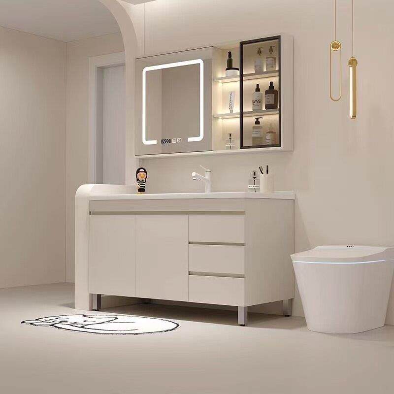这款浴室柜采用奶油风设计,温柔治愈的色调为卫生间注入简约高级感。柜体精选优质实木打造,结构稳固、防潮耐用,搭配智能落地式支撑,承重力强且便于清洁。台面采用陶瓷一体成型工艺,无缝设计有效防污防菌,日常打理轻松便捷。洗手盆深度适中,兼具美观与实用性,满足日常洗漱、洗脸需求。整体造型流畅,线条柔和,完美融入现代家居风格,既提升空间质感,又带来舒适使用体验,是追求品质生活的理想之选。