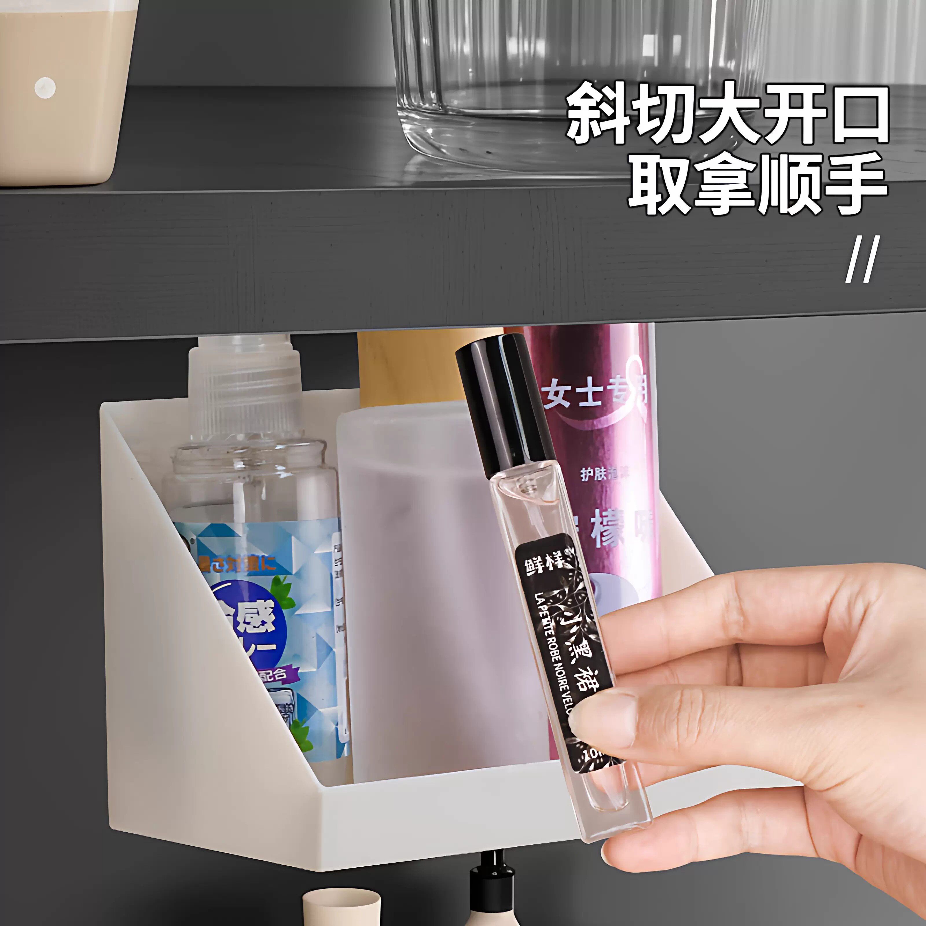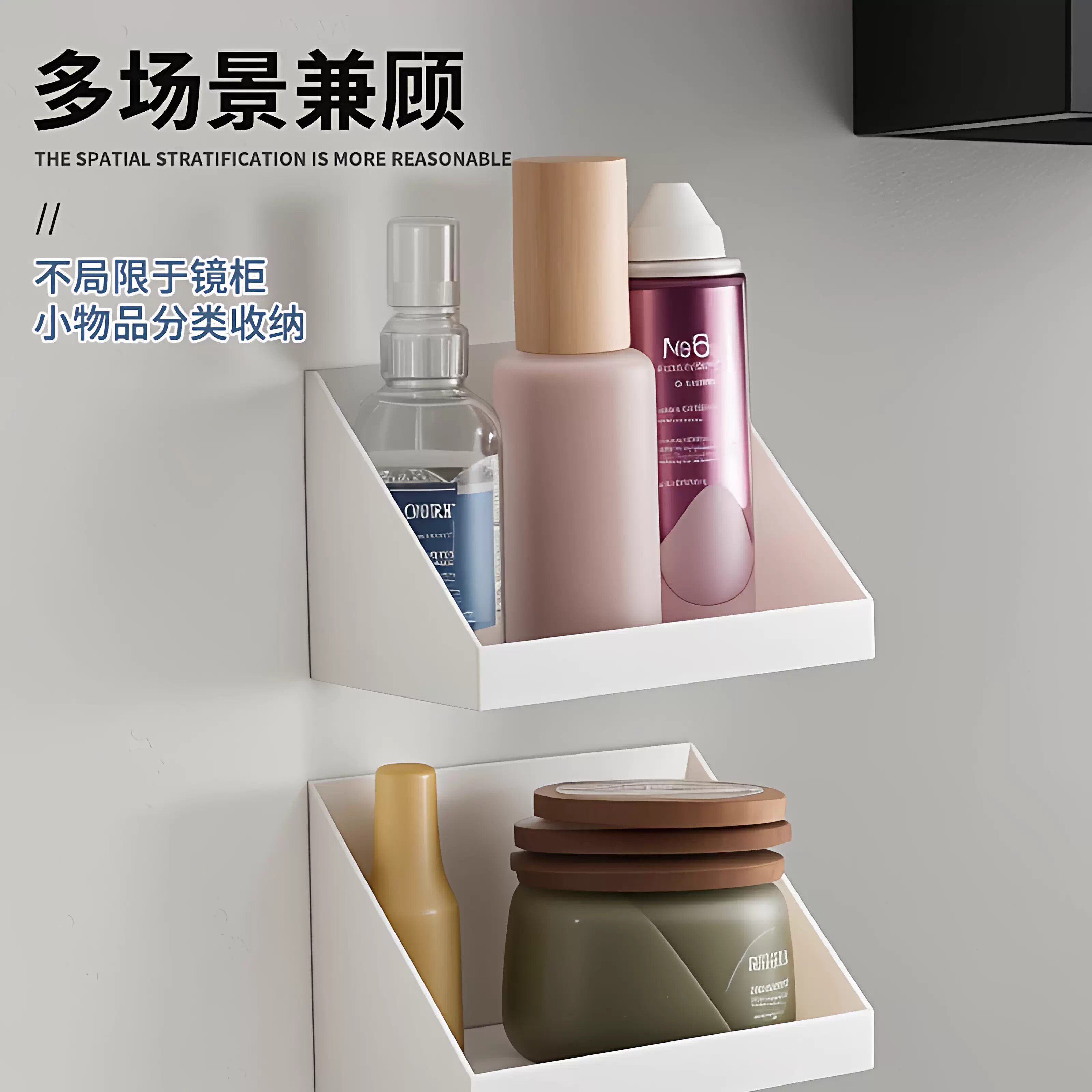 淘宝镜柜收纳盒卫生间洗漱台化妆品口红置物架浴室壁挂式斜口整理盒子