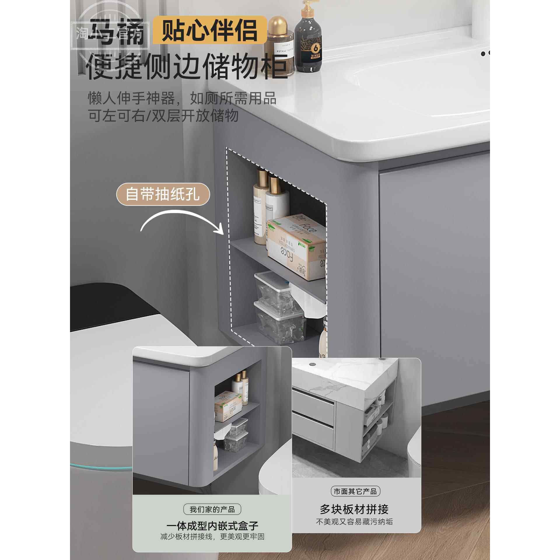 天猫太空铝蜂窝浴室柜组合带侧柜洗手盆柜卫生间圆弧一体陶瓷盆洗漱台