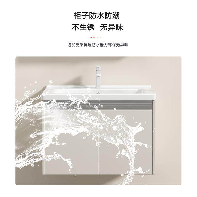 天猫奶油风蜂窝铝浴室柜组合洗手盆化妆室洗脸盆一体陶瓷盆洗漱台防水