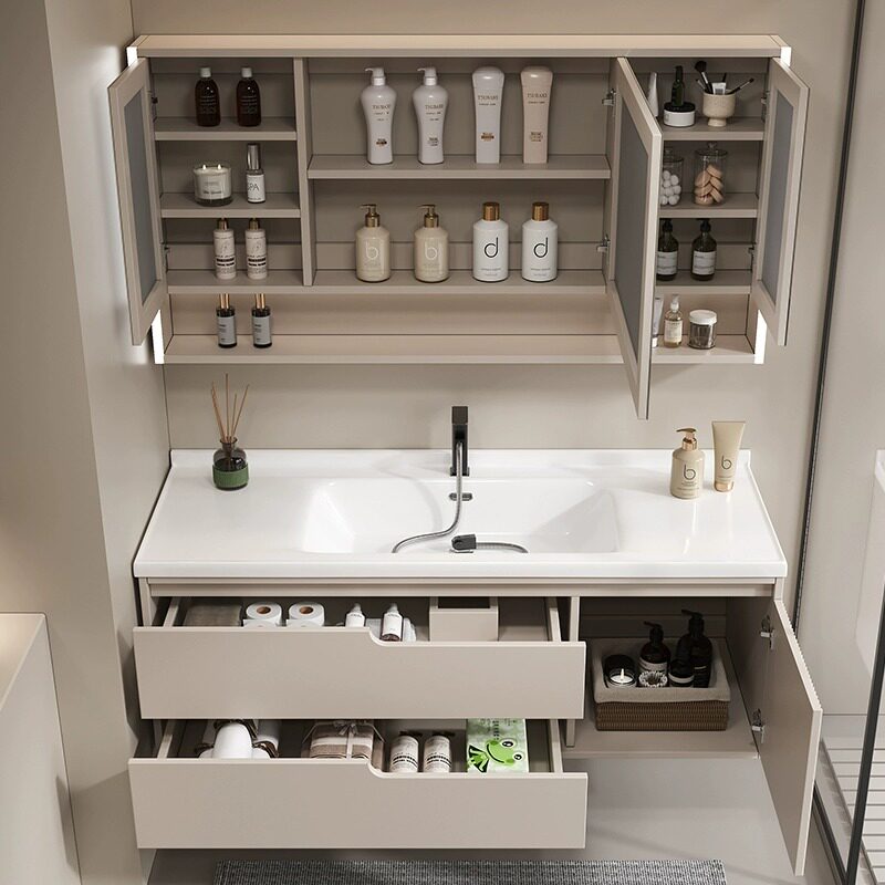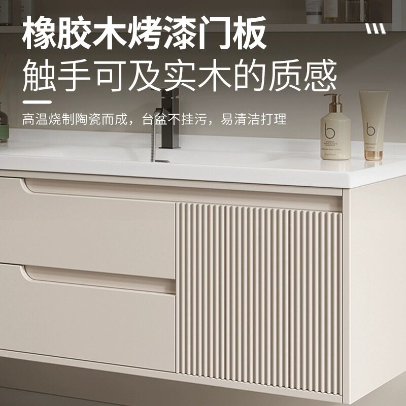 淘法恩莎奶油风浴室柜陶瓷一体盆智能卫生间洗漱台洗手洗脸盆柜组合