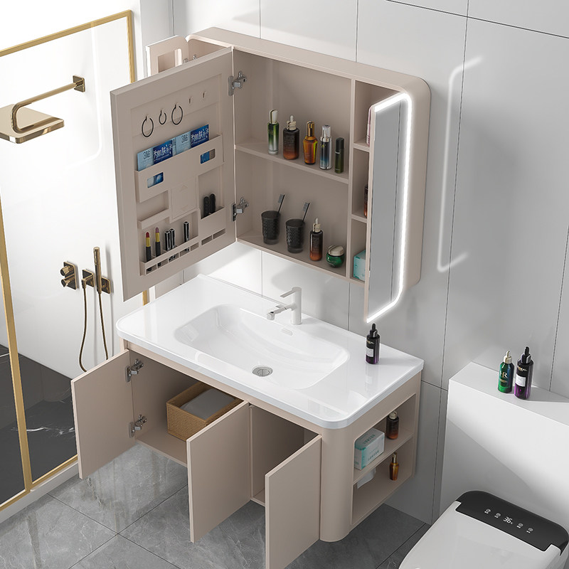 这款蜂窝铝浴室柜侧边美妆收纳组合,集美观与实用于一体,采用高强度蜂窝铝材质,防潮防腐、轻盈耐用,有效应对卫生间潮湿环境。侧边设计专属美妆收纳区,分层置物,轻松收纳护肤品、化妆品等小物件,取用便捷。搭配圆弧陶瓷一体洗漱台,线条流畅,触感温润,无缝设计杜绝藏污纳垢,清洁更省心。整体造型简约现代,兼顾空间利用与视觉美感,为卫浴空间增添整洁与格调,是现代家庭打造高品质洗漱体验的理想之选。