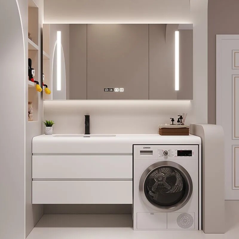 淘宝浴室柜组合洗衣机伴侣一体柜可丽耐肤感一体岩板无缝卫生间洗漱台