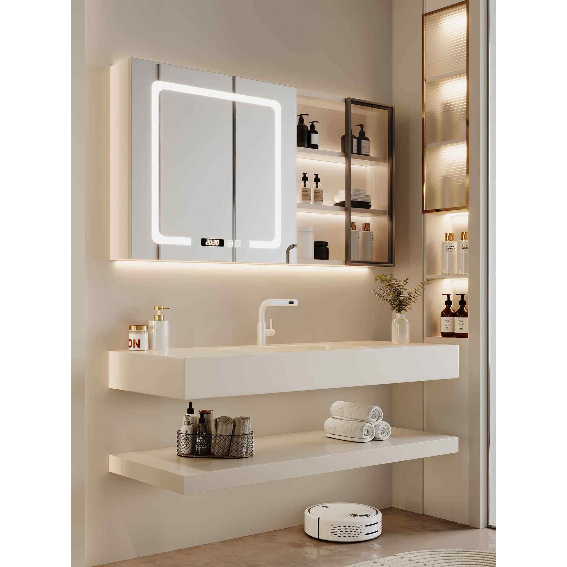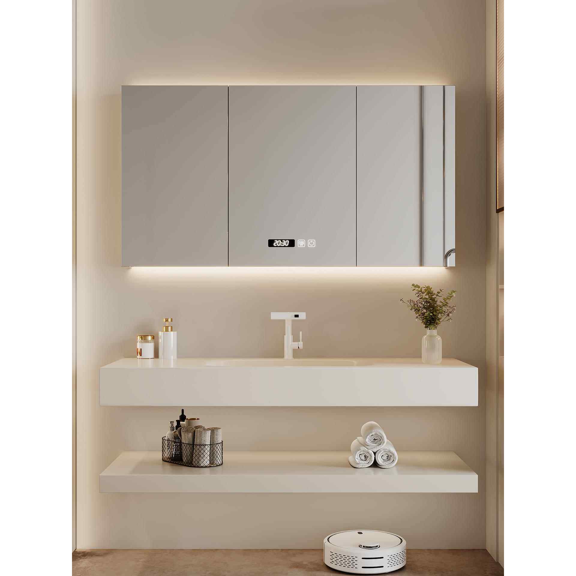 不锈钢智能浴室镜柜单独卫生间挂墙式带灯除雾沥水收纳定制镜定制