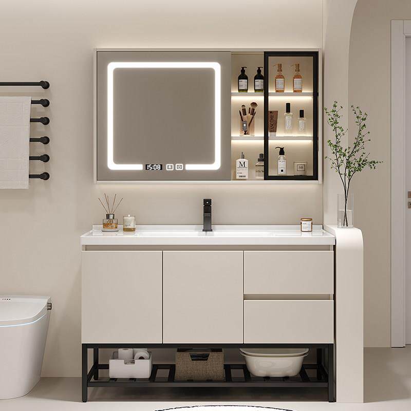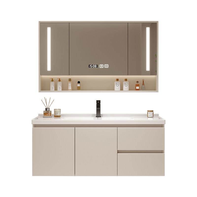 天猫奶油风陶瓷一体盆浴室柜化妆室智能洗手台洗脸盆柜组合实木洗漱台