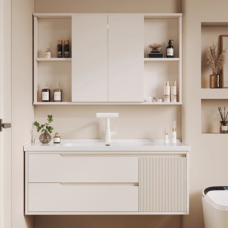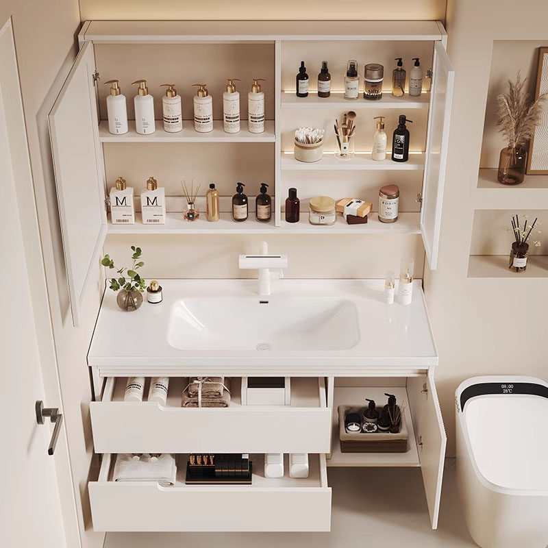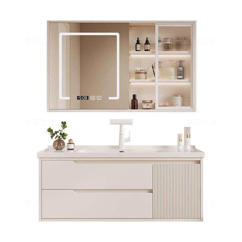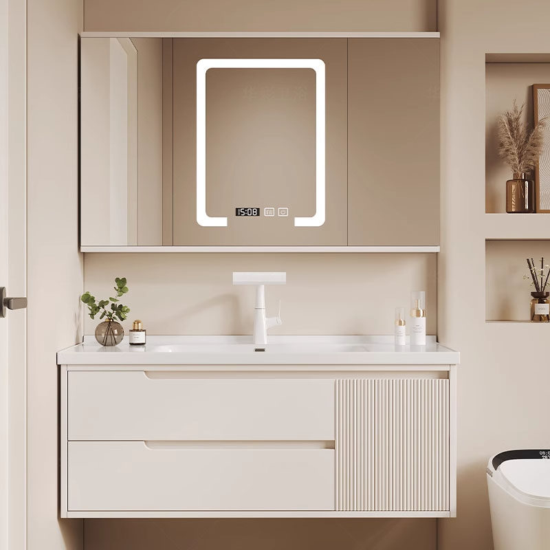 【恒洁】BC6169A/B奶白色(带灯镜柜)陶瓷一体盆浴室柜-不包安装