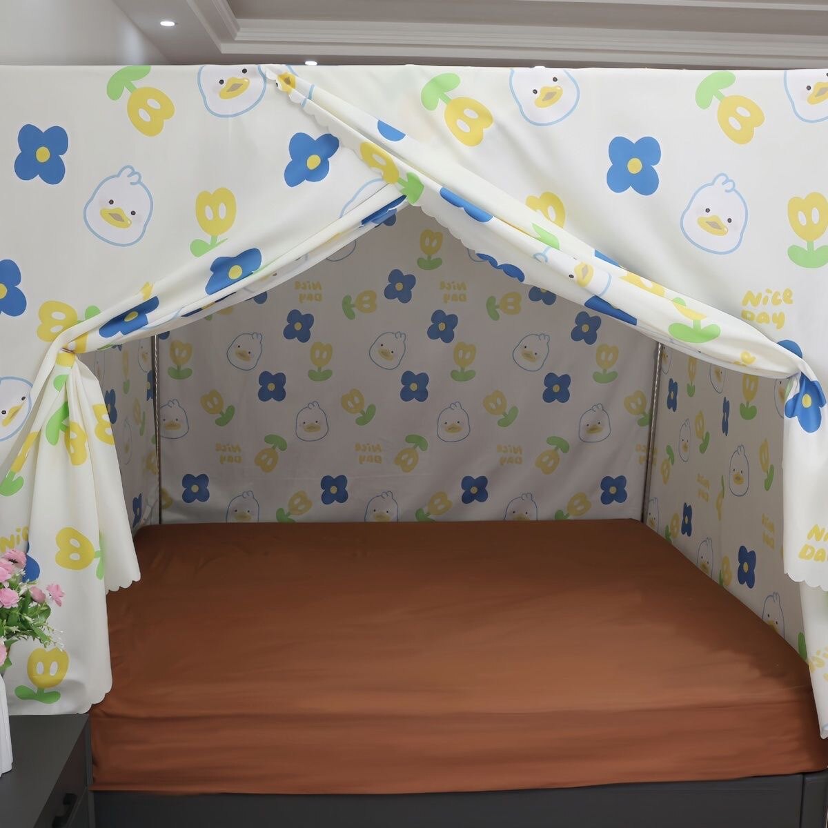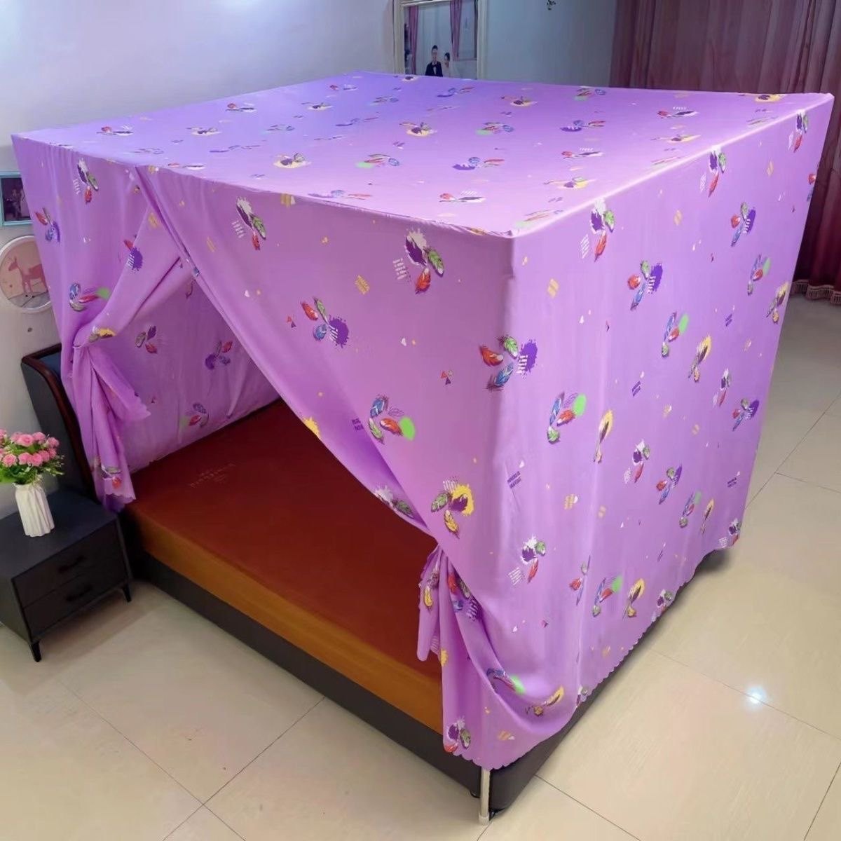 家用加厚夹棉床上帐篷保暖防风儿童防摔蚊帐遮光床帘室内床帐冬天