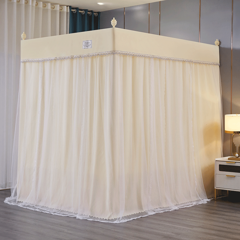 这款床帘蚊帐一体式遮光床幔,专为1.5米与1.8米床型设计,融合欧式优雅与实用功能。采用高品质遮光面料,有效阻挡光线,营造静谧舒适的睡眠环境。一体式设计兼具防蚊与挡风效果,顶部360°旋转支架稳固承重,落地式垂坠感强,尽显公主风浪漫气息。精美蕾丝花边与立体刺绣点缀,提升卧室格调,适合现代简约、轻奢或田园风格家居。安装简便,免打孔设计保护墙面,清洗方便。无论是夏日防蚊还是冬日挡风,都能为您提供贴心守护,打造私密温馨的私人空间。