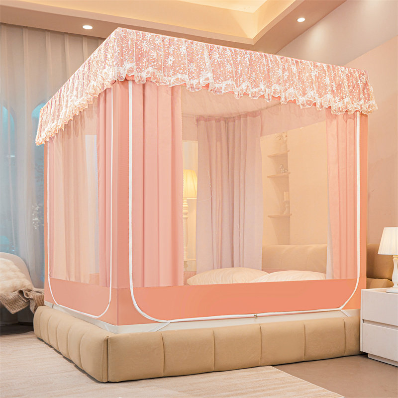这款遮光蚊帐床帘采用全封闭拉链一体式设计,专为1.5米和1.8米床型打造,完美贴合公主床幔造型,兼具美观与实用。高密度遮光面料有效阻隔光线,营造私密舒适的睡眠环境,同时具备优异防蚊效果。拉链顺滑静音,开合便捷,实现360度全包围防护,杜绝蚊虫侵扰。支架稳固耐用,安装简单,无需打孔,适配多种床型。精致蕾丝花边与浪漫纱幔相衬,提升卧室格调,适合家庭、宿舍等多种场景使用,是追求品质睡眠与优雅生活的理想之选。