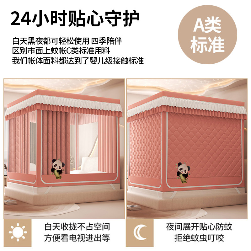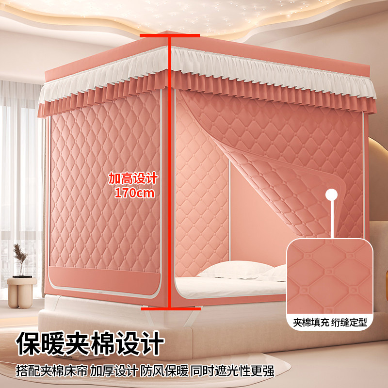 淘宝保暖加厚夹棉床帘蚊帐一体式床幔遮光家用卧室儿童防摔风帐篷冬季