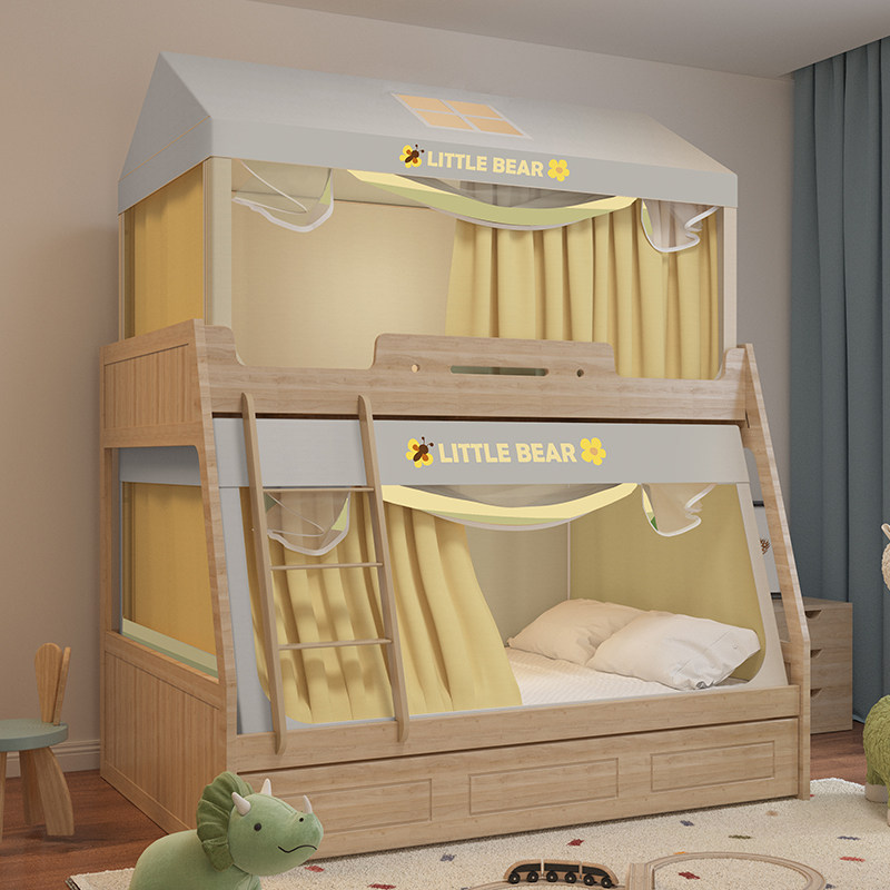 天子母床蚊帐家用2025新款防摔儿童上下铺床宿舍上铺遮光床帘一体式
