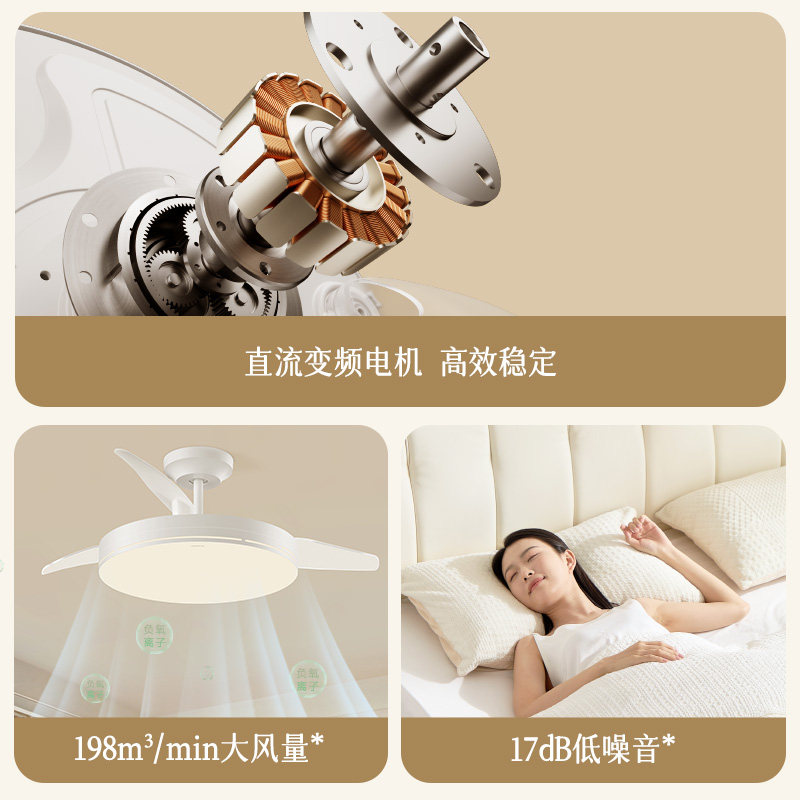 倍光明全光谱护眼风扇灯餐厅卧室一体静音隐形三代普瑞风扇吊灯