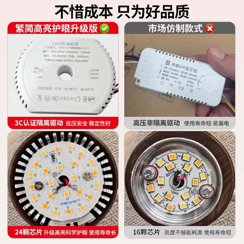 天欧普照明智能控制led卧室灯餐厅吊灯风扇灯调风低噪品风全光谱FS
