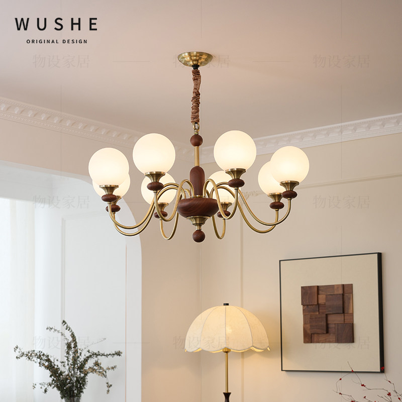 繁简【旋幕】中古风客厅风扇灯胡桃木美式复古全铜大扇叶餐厅吊灯