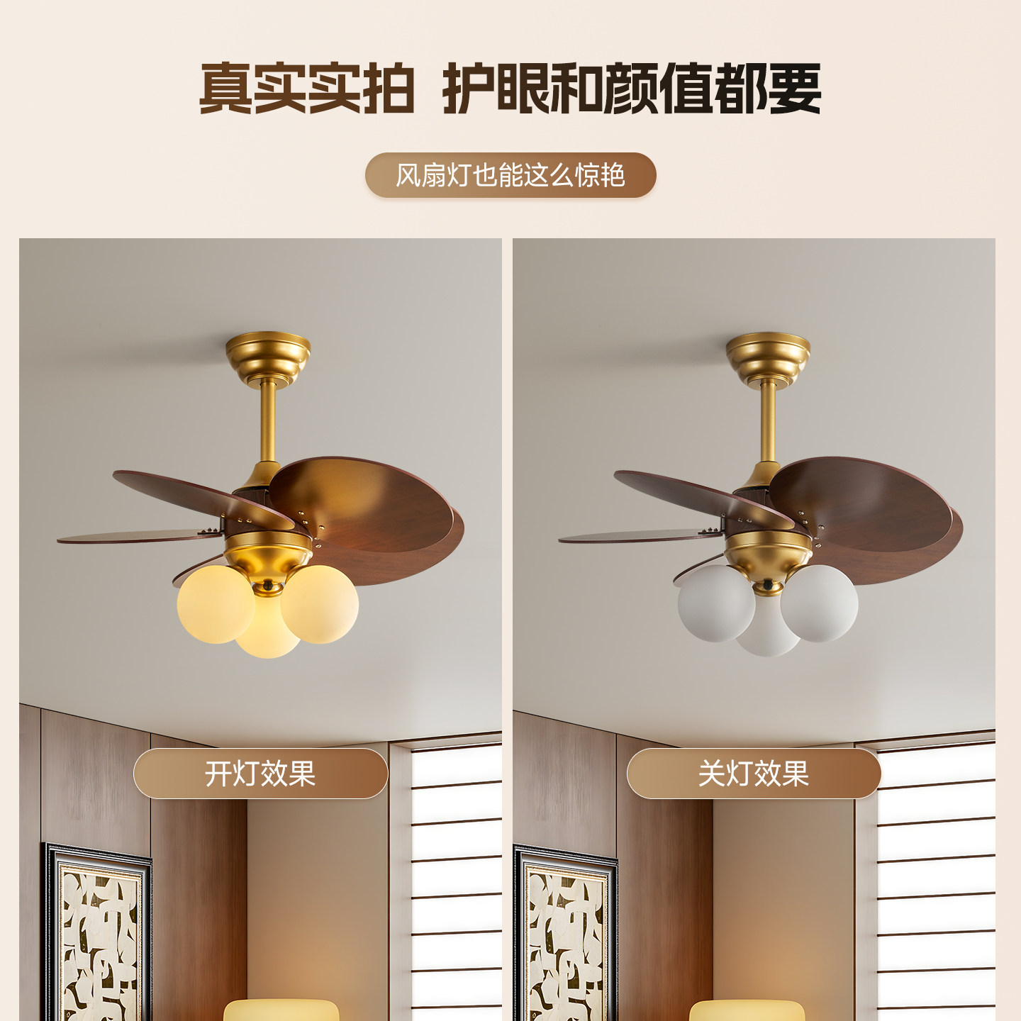 法式中古卧室风扇灯复古美式餐厅灯2026新款护眼全光谱吊灯物设