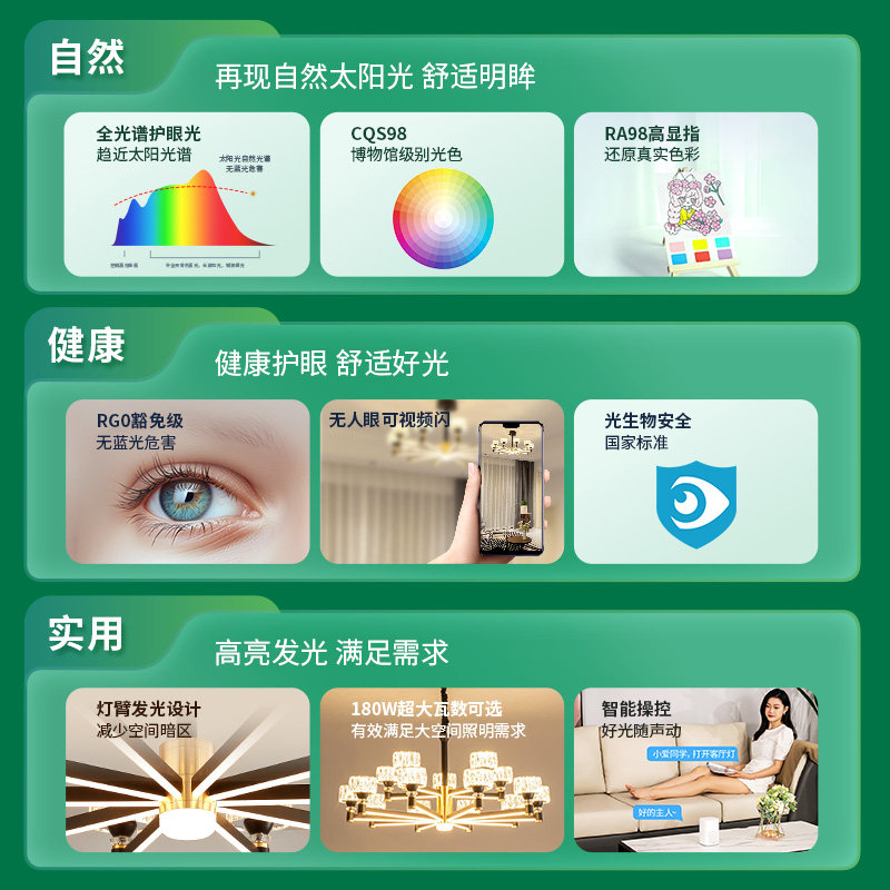 欧普照明智能控制led卧室灯餐厅吊灯风扇灯调风低噪品风全光谱FS