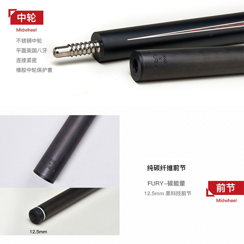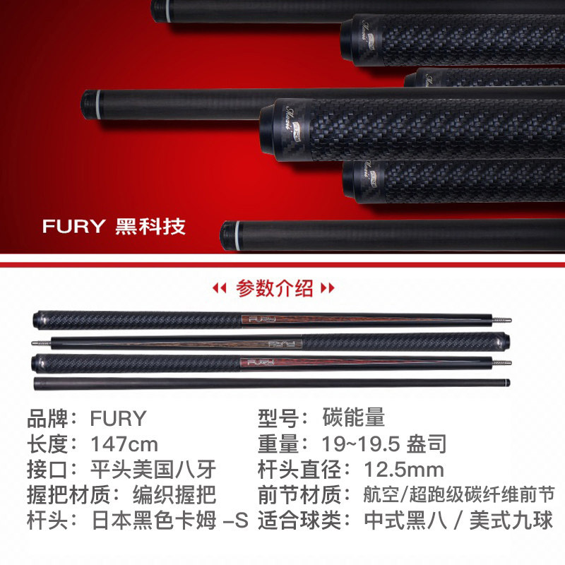 天猫威利fury台球杆黑科技碳能量黑8球杆中式八球美式九球大头桌球杆