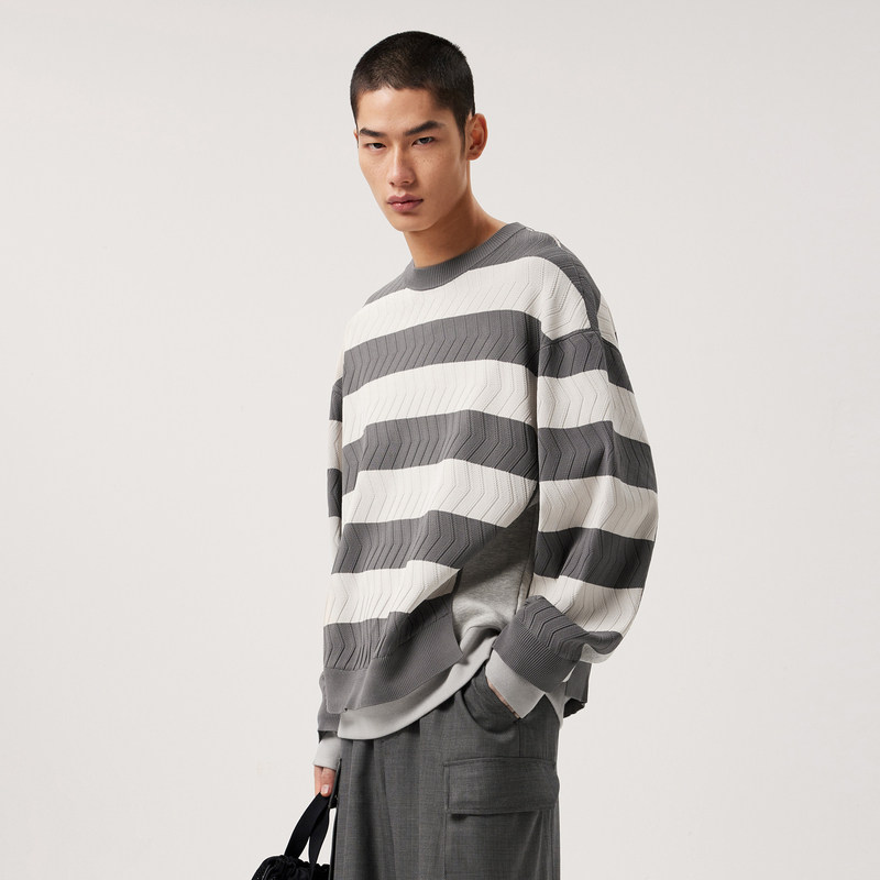 【糯米绒】太平鸟男装 休闲毛衫男士26春新款经典绞花宽松毛衣潮