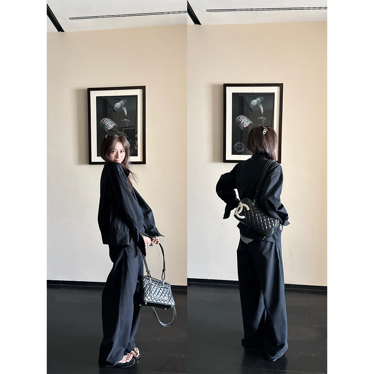 猫猫家加长女裤秋冬美式黑色工装牛仔裤女高腰阔腿裤设计感直筒裤